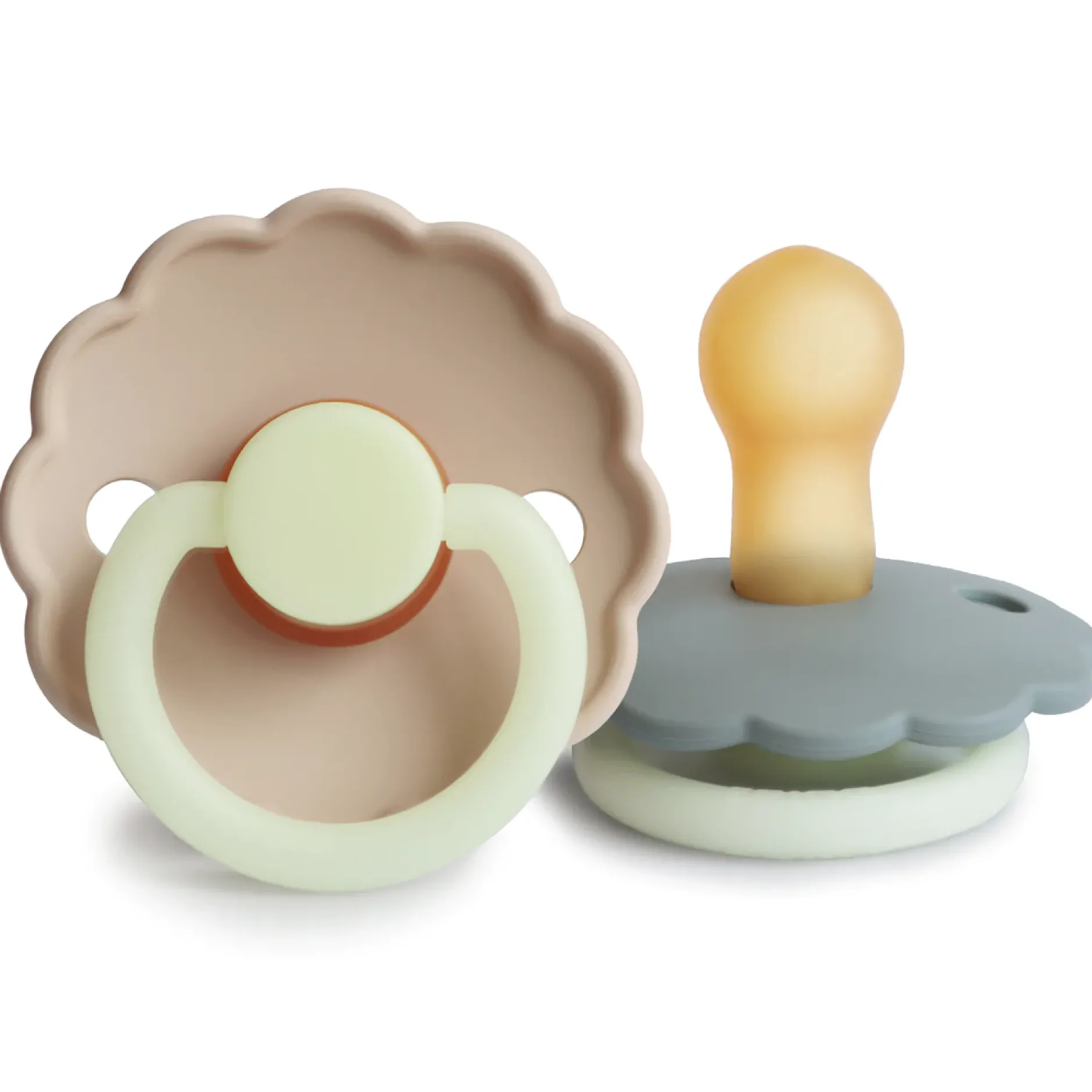 La gamme de sucettes de nuit FRIGG est soigneusement conçue pour le confort de votre bébé avec un anneau et un bouton qui brillent dans l’obscurité. La courbe vers l’extérieur maintient la tétine hors de la tête de bébé et le protège grace à ses trous d’aération et une poignée de sécurité. Disponibles dans une gamme de couleur élégante, les sucettes FRIGG constituent un bel ajout à votre collection d’essentiels pour bébé.