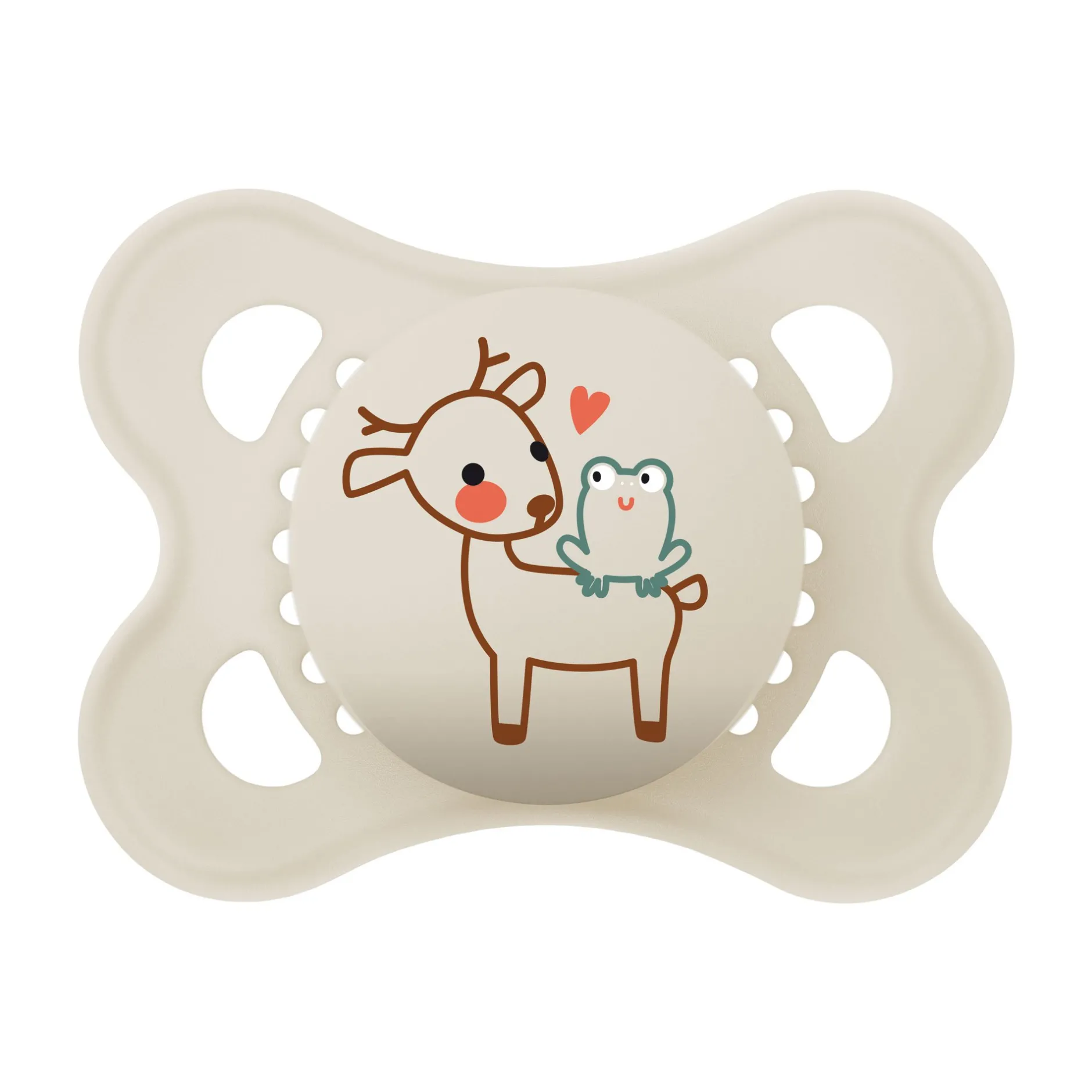 - La forme symétrique de sa téterelle permet à la sucette d’être toujours bien positionnée, pour ne pas nuire au développement naturel de la bouche de bébé.