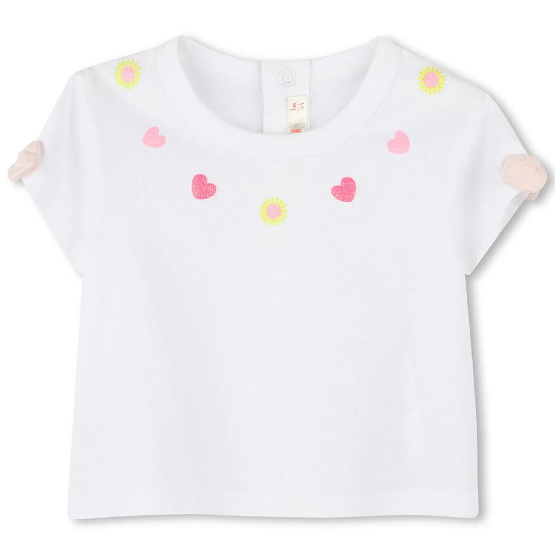Tee-shirt en 100% coton, illustration au niveau du col avec encre gonflante, petit noeud sur les manches courtes, fermet…