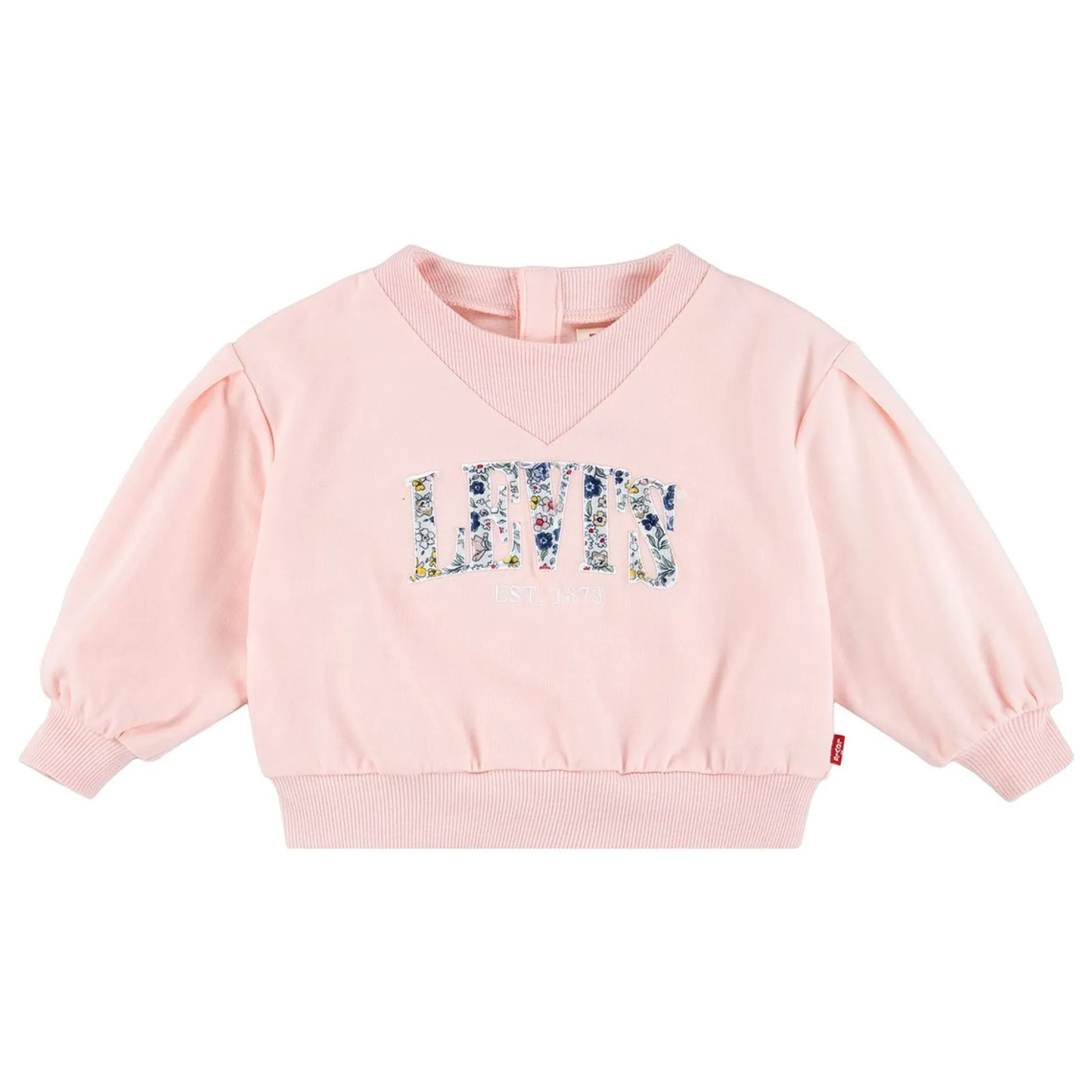 Un t-shirt manches longues à col rond rose pâle tendance floqué de l’emblématique logo Levi’s imprimé de fleurs.Voi…