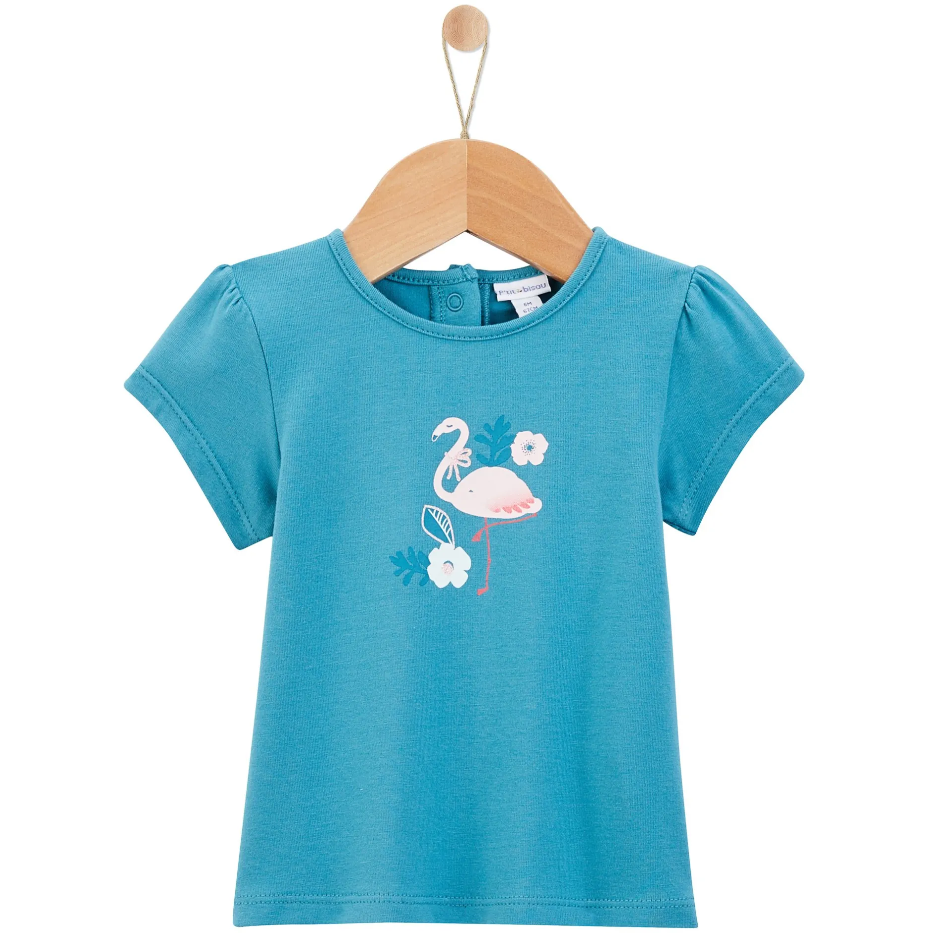 Tee shirt manches courtes P’tit Bisou en jersey lycra existant en rose pâle et vert émeraude.