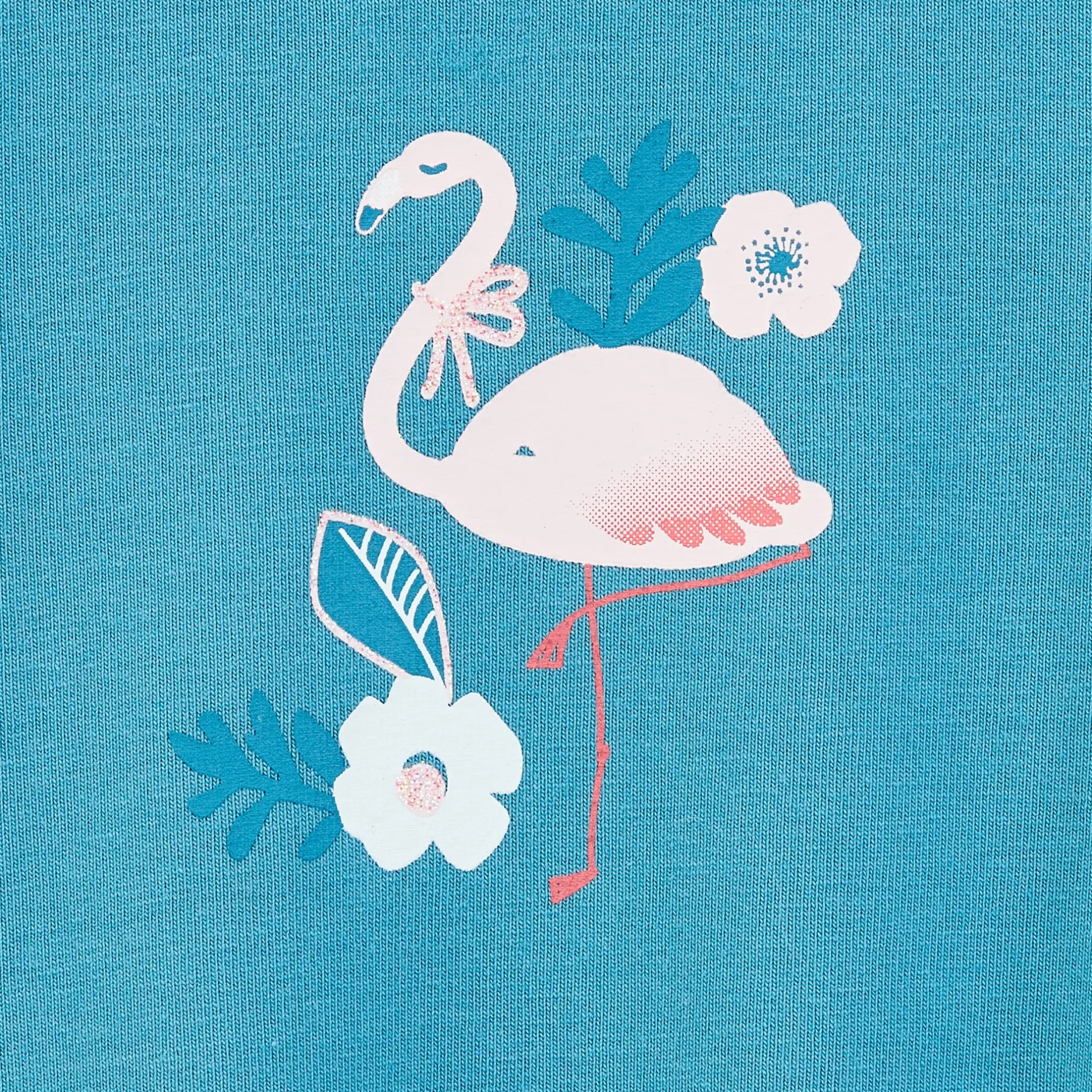 - Très jolie animation devant représentant un flamant rose au milieu d’un jardin luxuriant et fleuri.