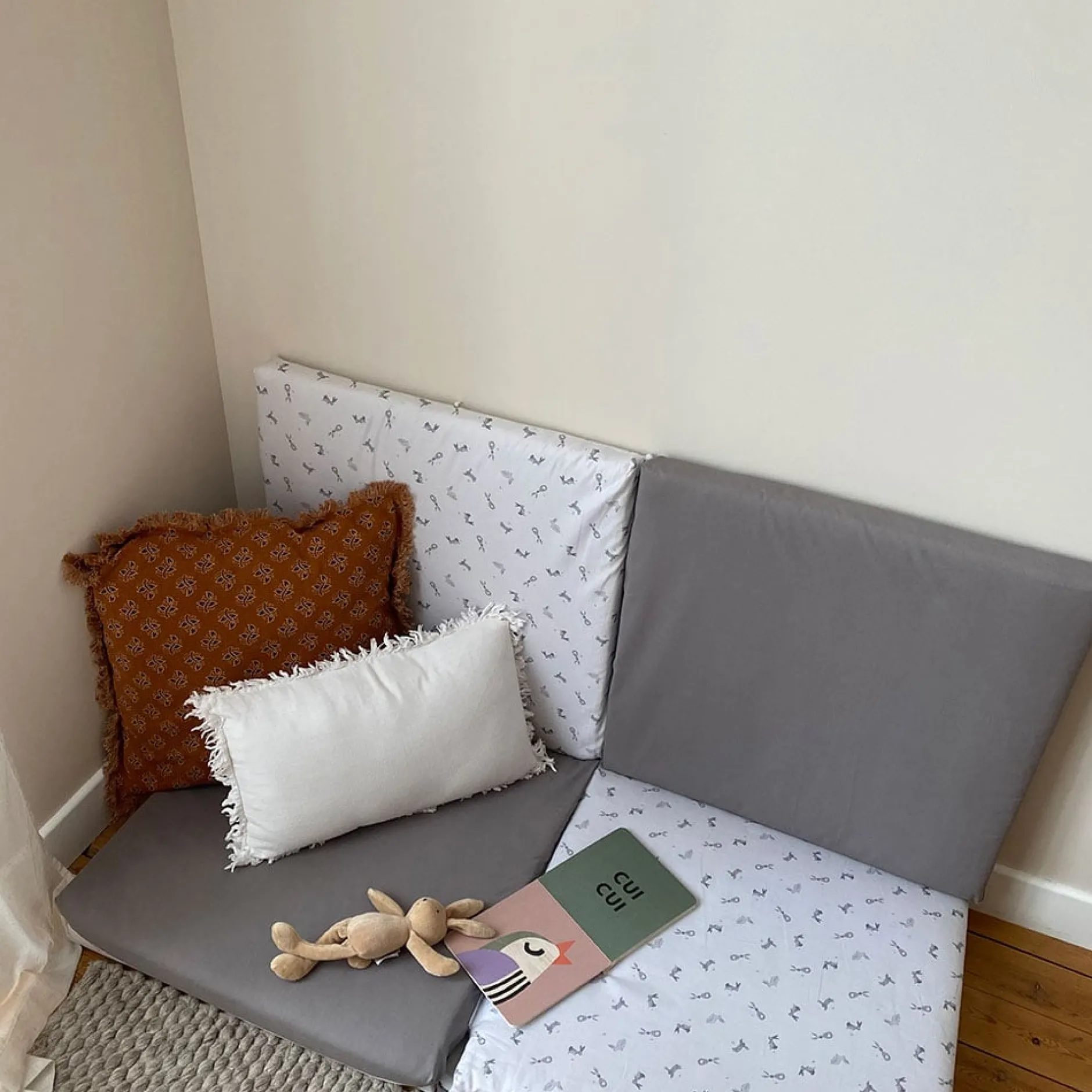 - Déplié, il offre un véritable tapis de motricité et d’éveil