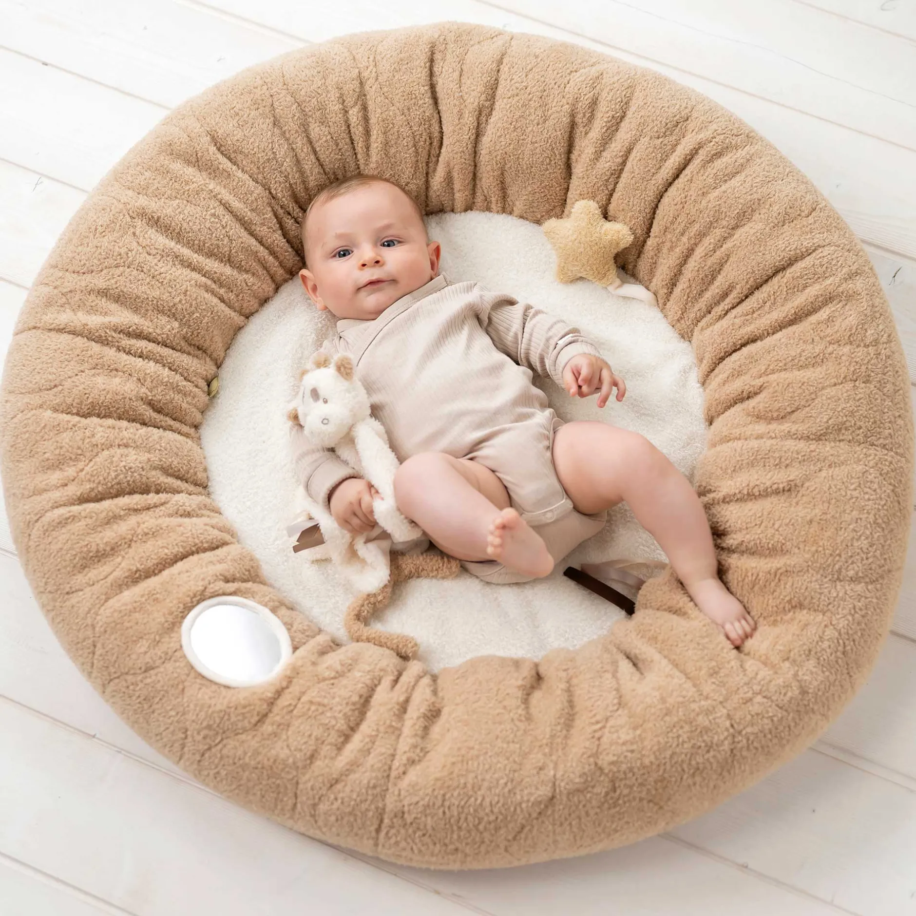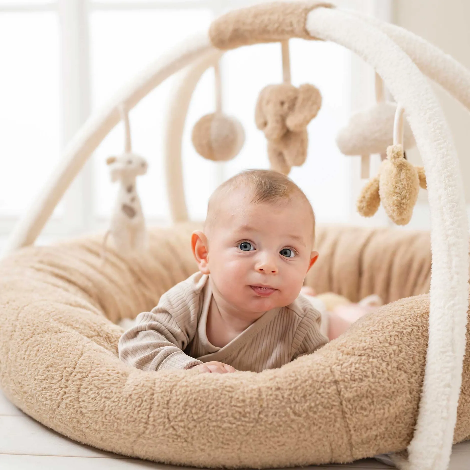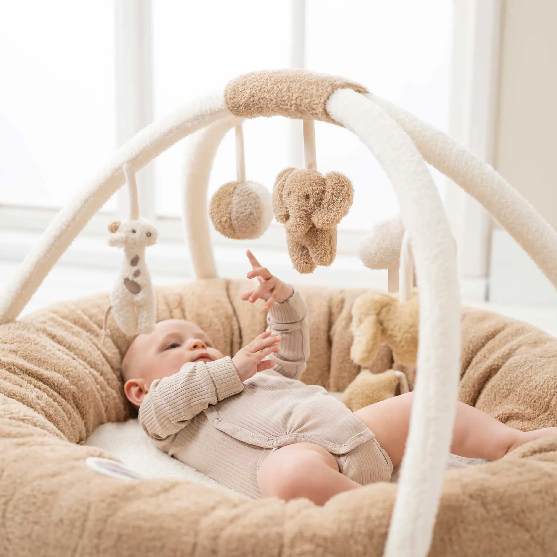 Ainsi, les réflexes de préhension de votre enfant sont stimulés en jouant. Le tapis de jeu en tissu bouclette est lavable à la main et peut être facilement détaché des arcs.