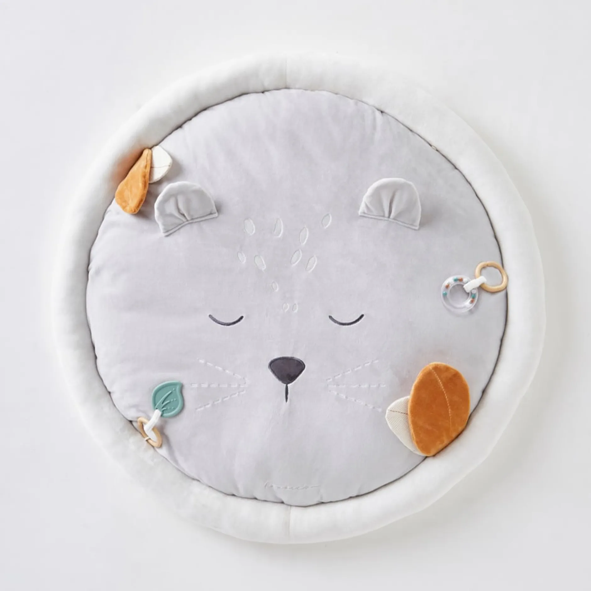Le tapis d’éveil Babou & Kendi en Veloudoux est parfaitement adapté pour stimuler la motricité, le développement intellectuel et les sens de l’enfant grâce aux différentes matières et sons qui le constituent (miroir, pouet, papier froissé, clochette et jouet de dentition). Le tapis d’éveil est doté d’un bord rembourré qui permet à votre bébé de jouer en toute sécurité.