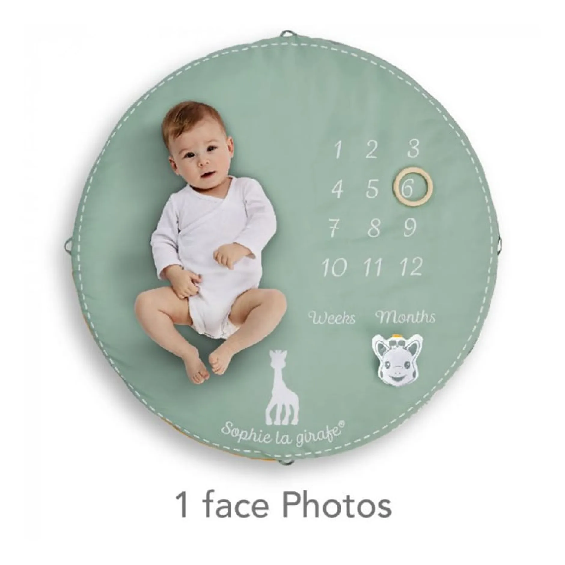 - Une face « photos » : pour suivre et photographier l’évolution de bébé, semaine après semaine / mois après mois, et garder de beaux souvenirs de chaque instant !