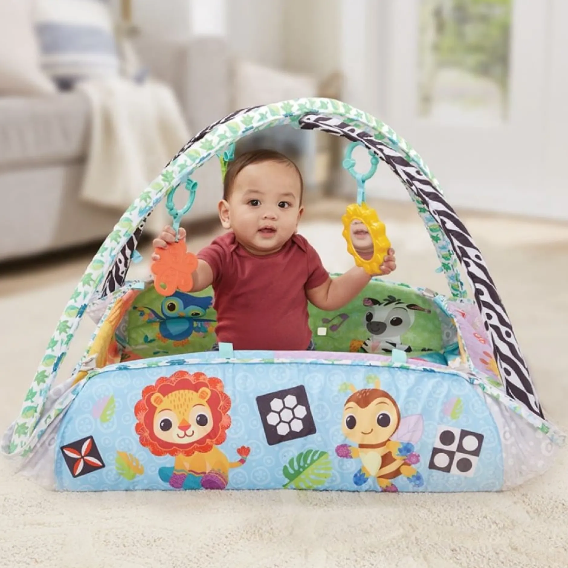 Avec le Maxi Tapis d’éveil sensoriel 7 en 1, votre tout-petit éveille ses sens tout en douceur et stimule sa motricité. Les différentes matières et textures, les hochets ainsi que le xylophone électronique lui permettent de mobiliser son toucher, sa vue et son ouïe.
