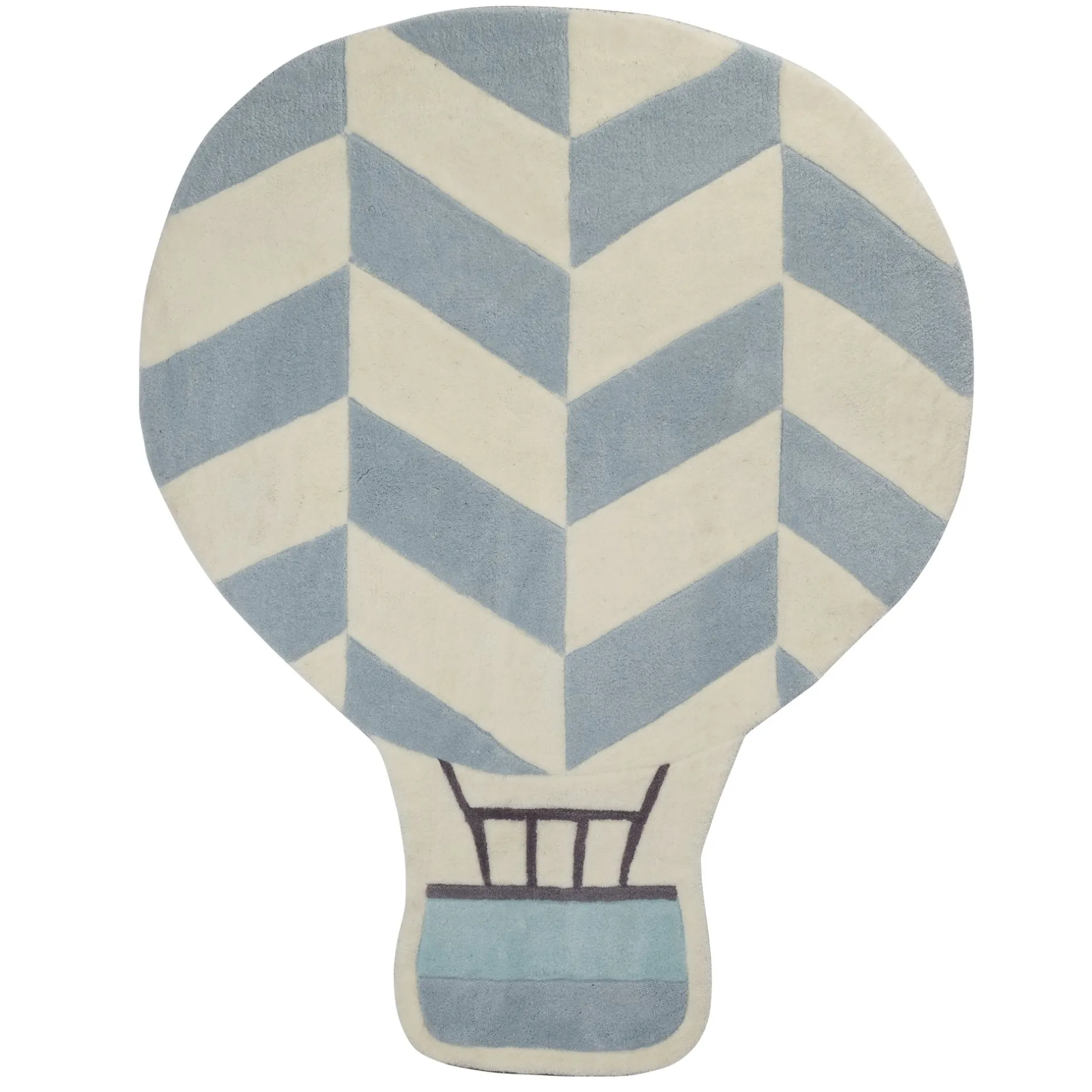 Tapis de chambre Lazare tufté main en forme de montgolfière. Il apportera une touche ludique et décorative à la pièce.