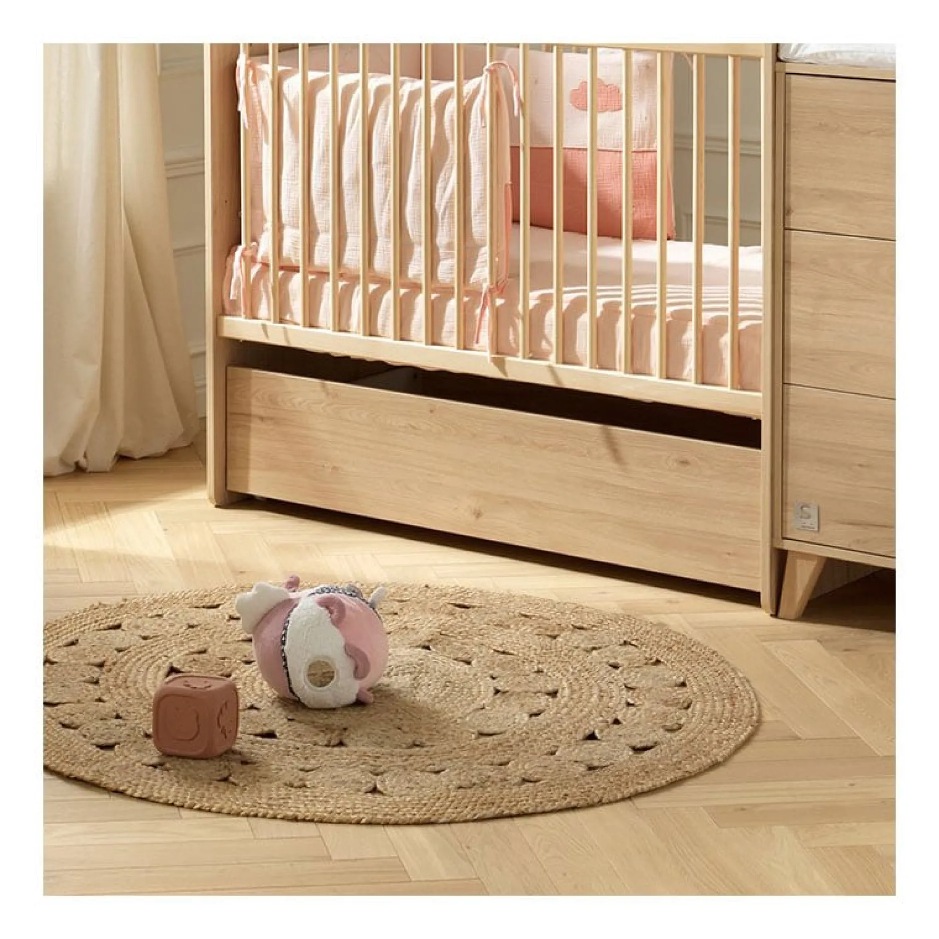 Complète harmonieusement le lit de votre enfant ; idéal pour ranger les affaires de bébé.