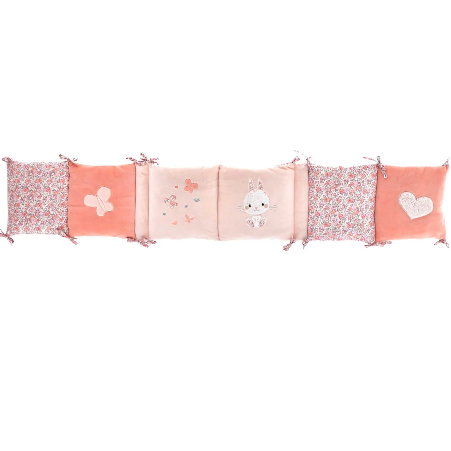 Le tour de lit Lapinou est adaptable sur lit 60×120 et 70×140 cm et se fixe au lit grâce à ses 12 liens.