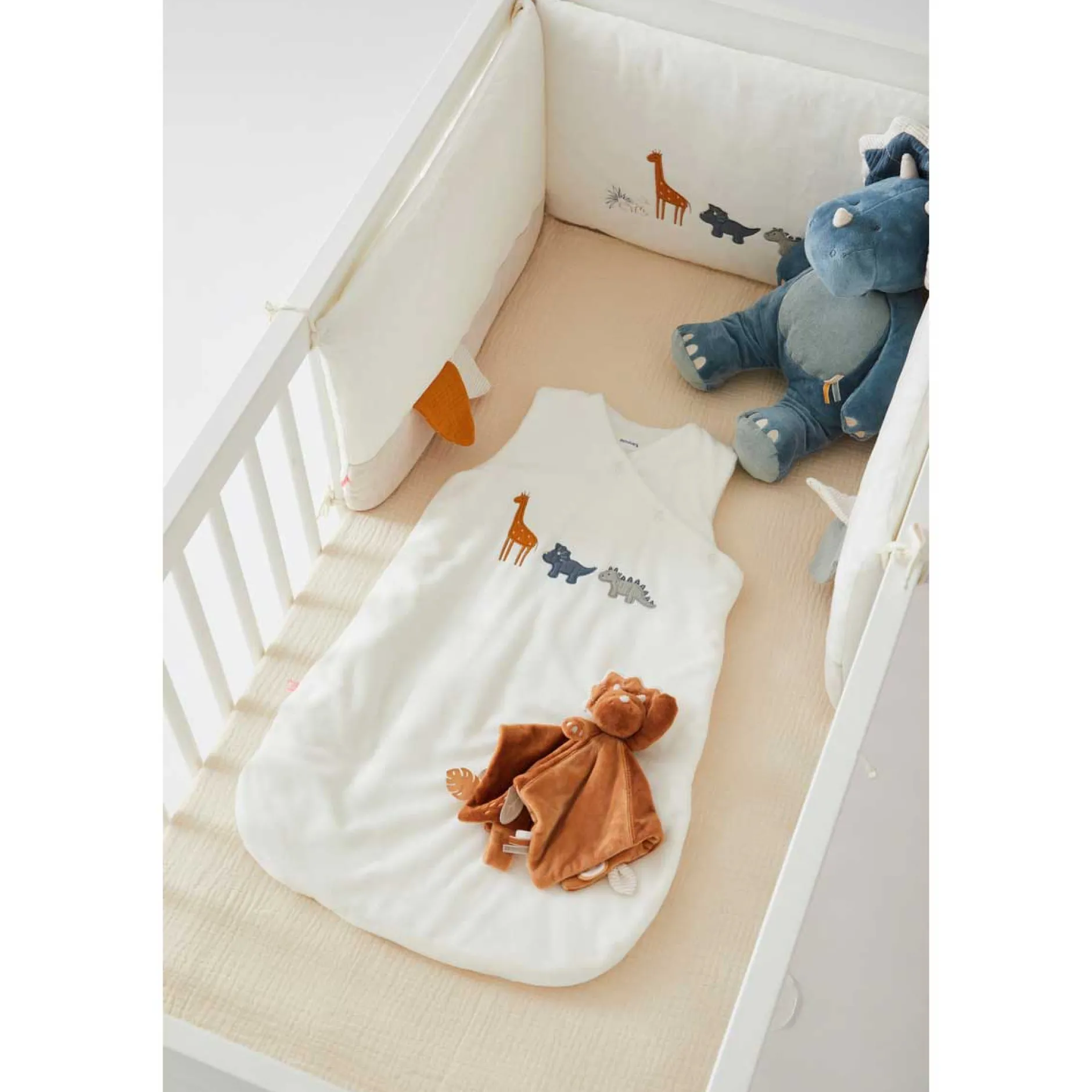 Le tour de lit écru en Veloudoux® de la collection Tiga, Stegi & Ops garantit sécurité et douceur maximale à bébé grâce à son rembourrage. Il protège bébé des courants d’airs et lui évite de passer ses bras ou ses jambes à travers les barreaux.