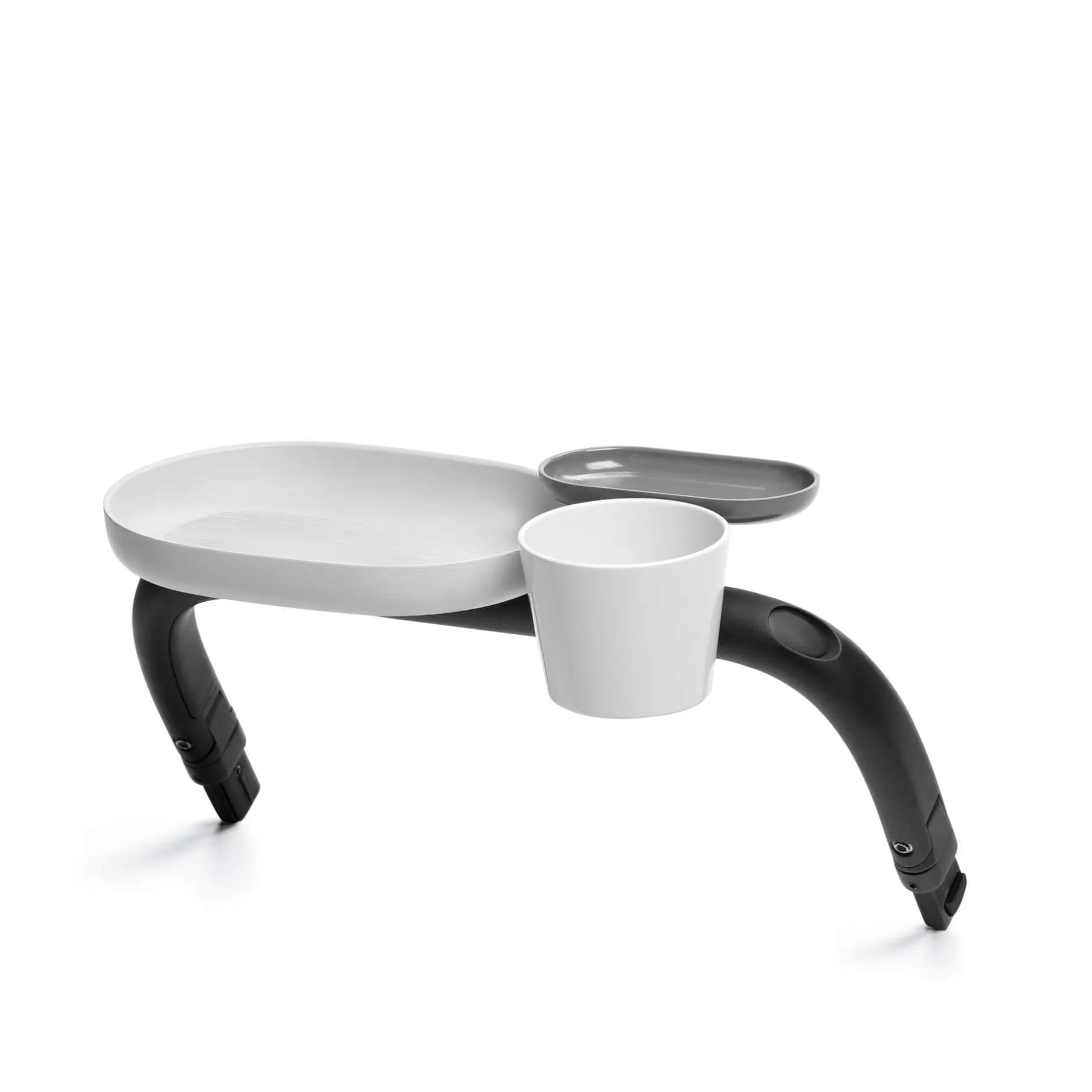 - Le plateau repas se fixe directement sur le châssis de votre poussette.