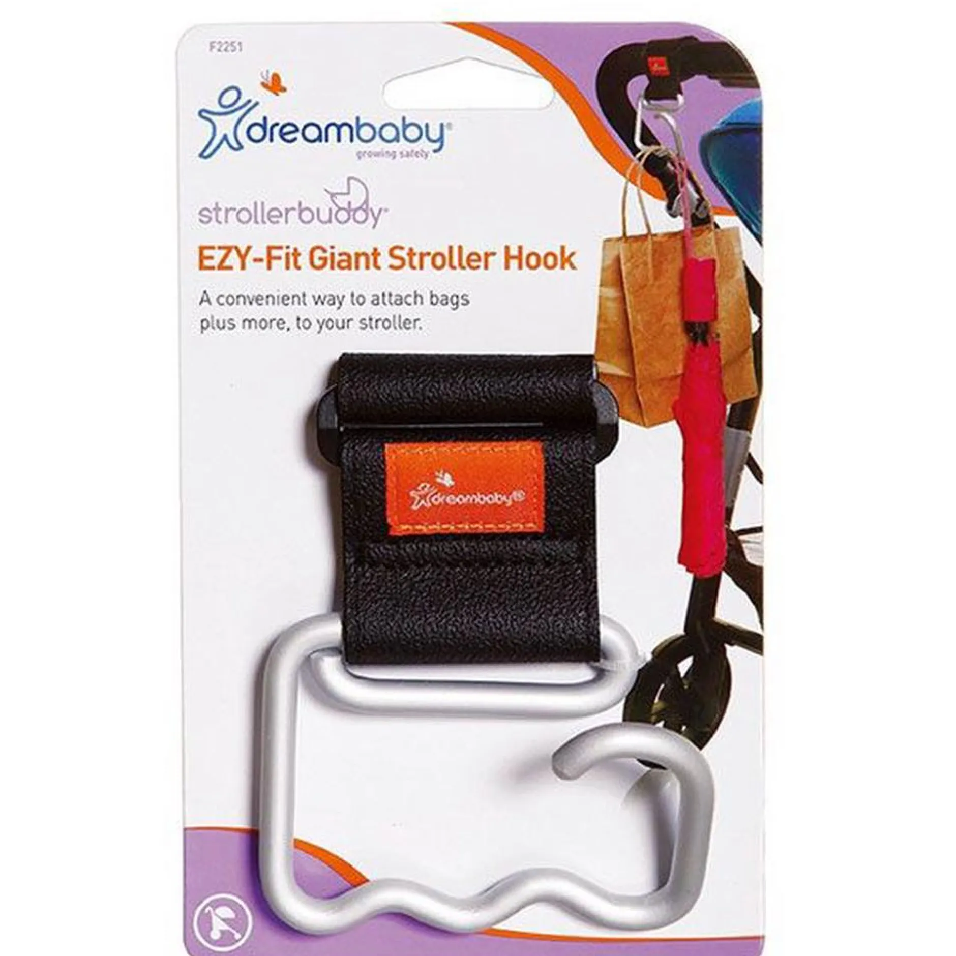 Le crochet géant EZY-Fit pour poussette de Dreambaby® est facile à utiliser et constitue un excellent moyen de suspendre des objets à votre poussette.
