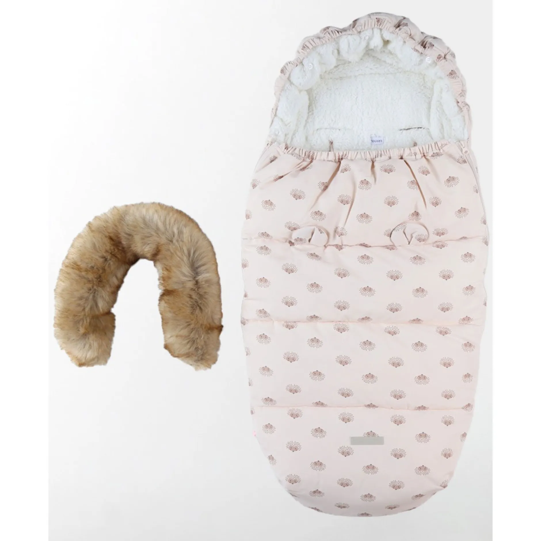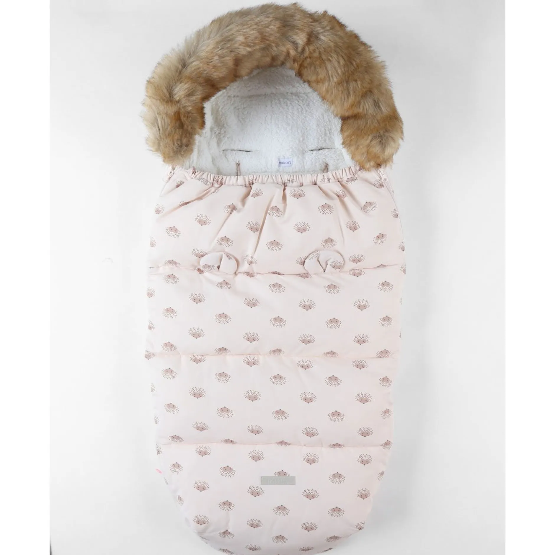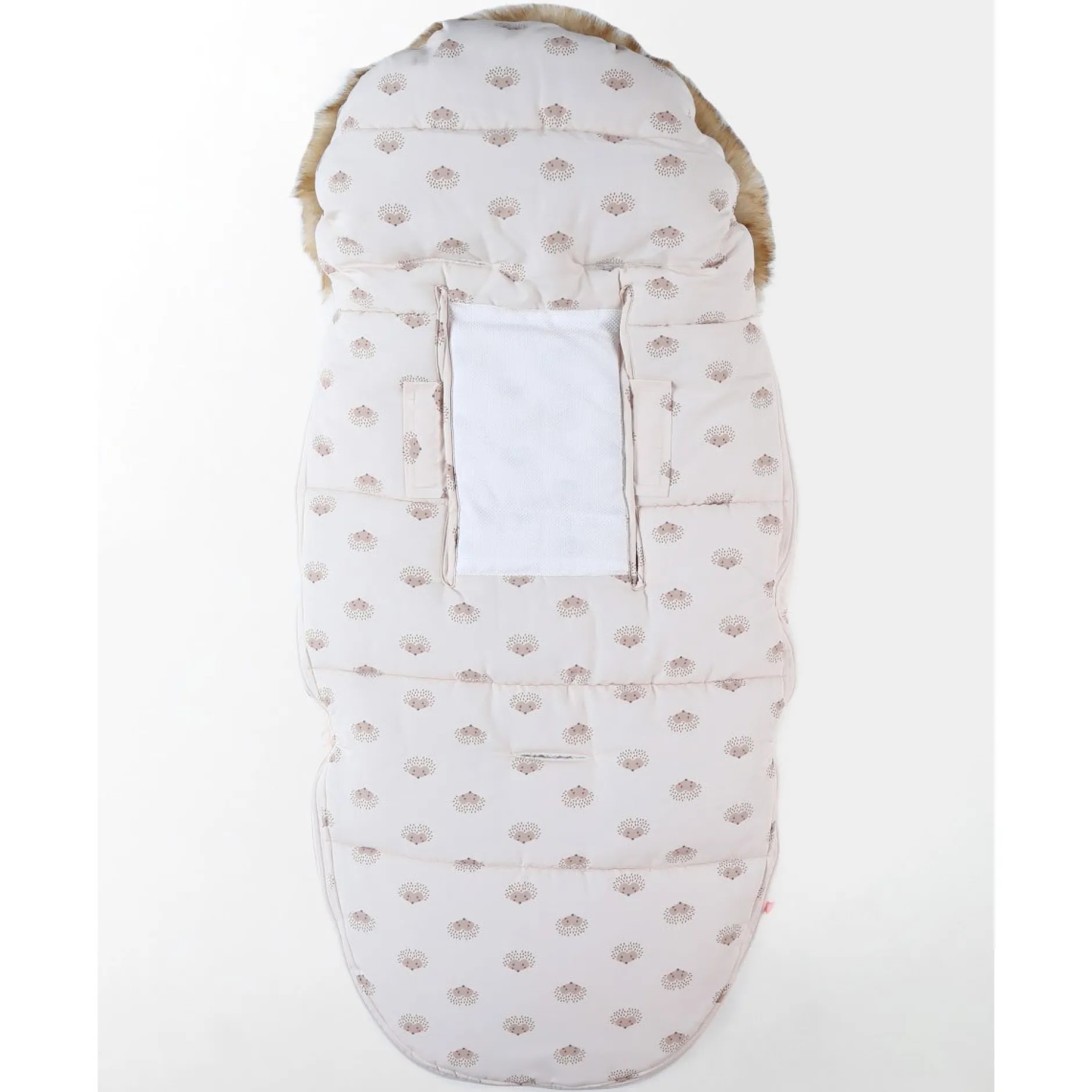 La chancelière en toile déperlante (6-36M), rembourrée de sherpa, rose pâle imprimée hérissons de la collection Mix & Match gardera votre petit explorateur bien au chaud lors de vos promenades en poussette.