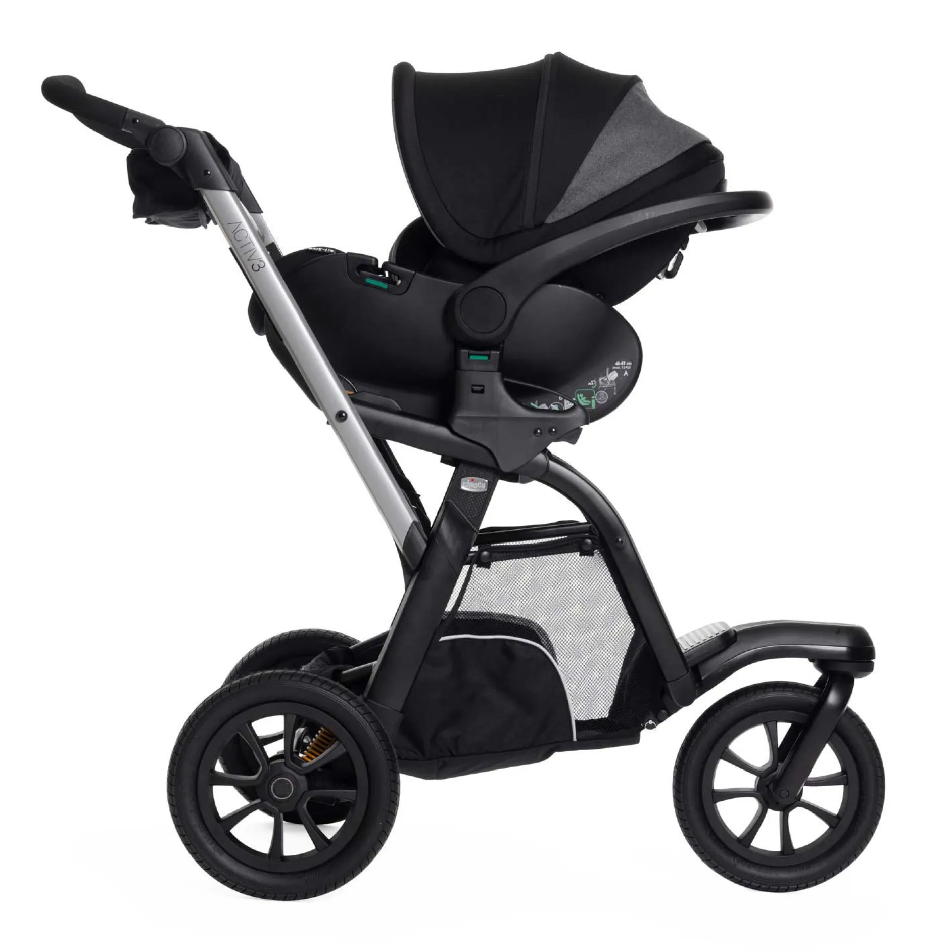 La poussette Activ3 est compatible avec la nouvelle nacelle Activ3, légère et pliable, et les sièges auto Kory i-Size et first seat recline.