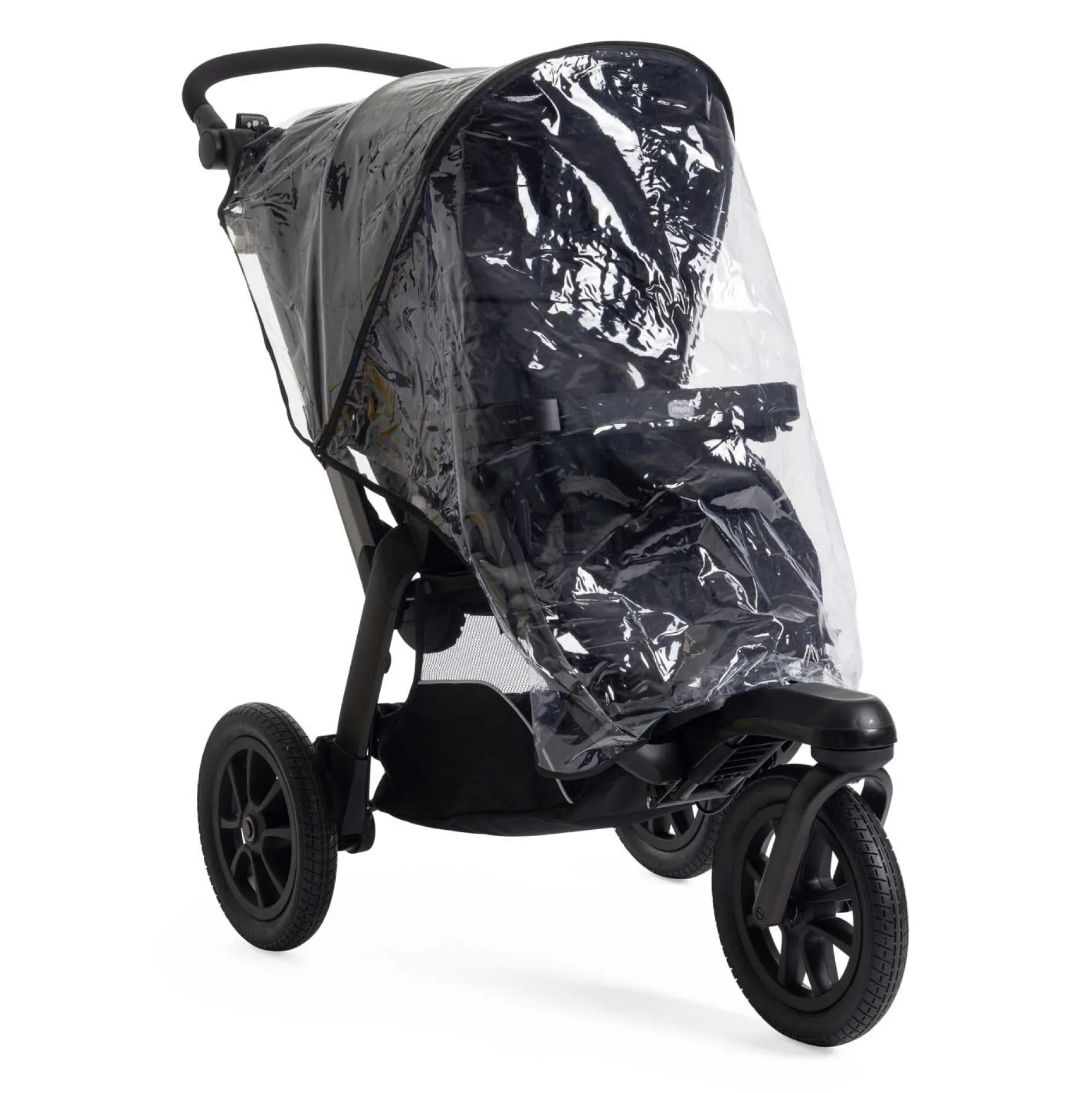La poussette est équipée d’un canopy XXL extensible, anti-UV pour protéger bébé, d’un arceau de sécurité rembourré et amovible, d’un habillage-pluie et d’une tablette porte-objets. Elle se plie facilement, à une main.