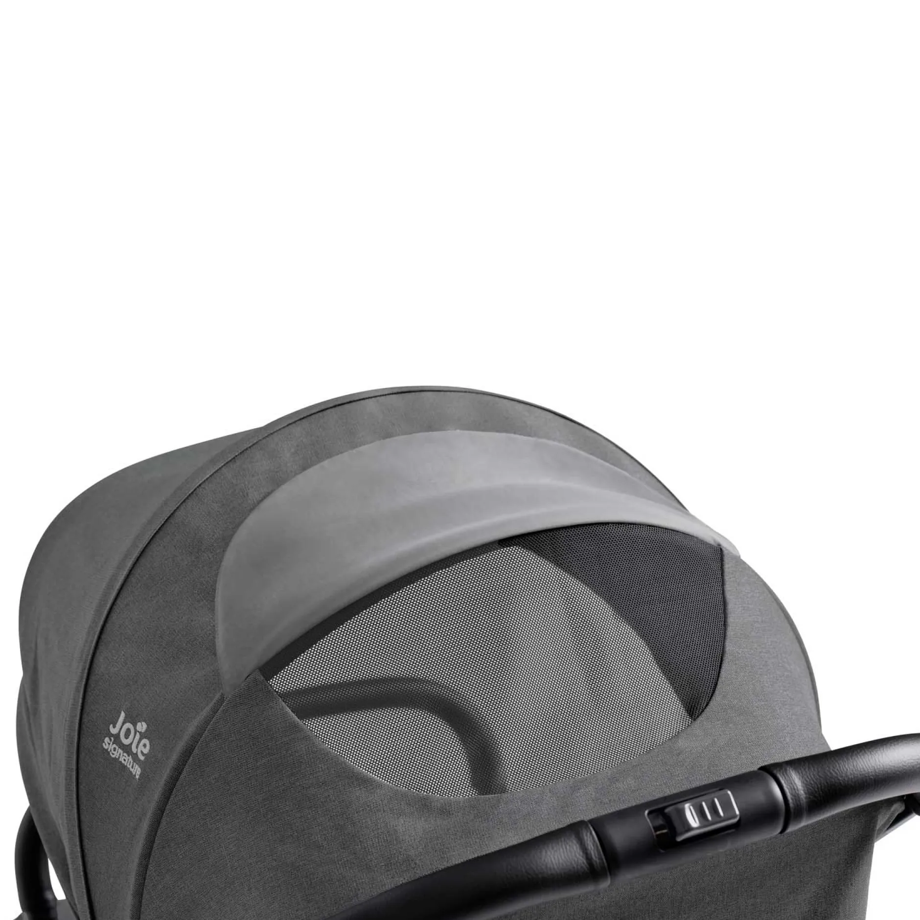- Fenêtre en filet sur le dessus de la capote pour faciliter l’aération et garder un oeil sur bébé