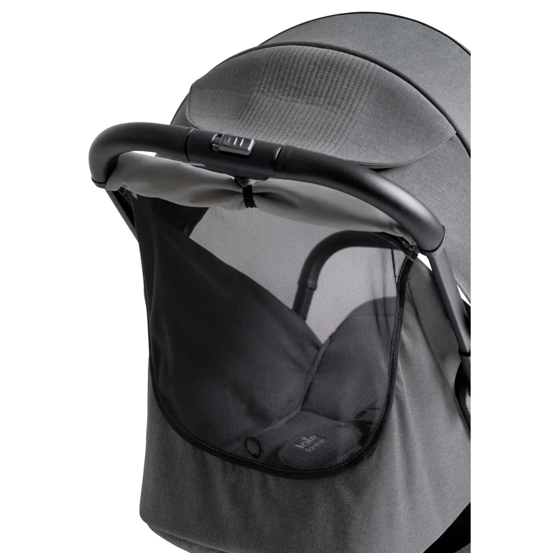 - À l’arrière de la capote, possibilité de faire apparaître une fenêtre en filet pour améliorer la circulation de l’air à l’intérieur de la poussette