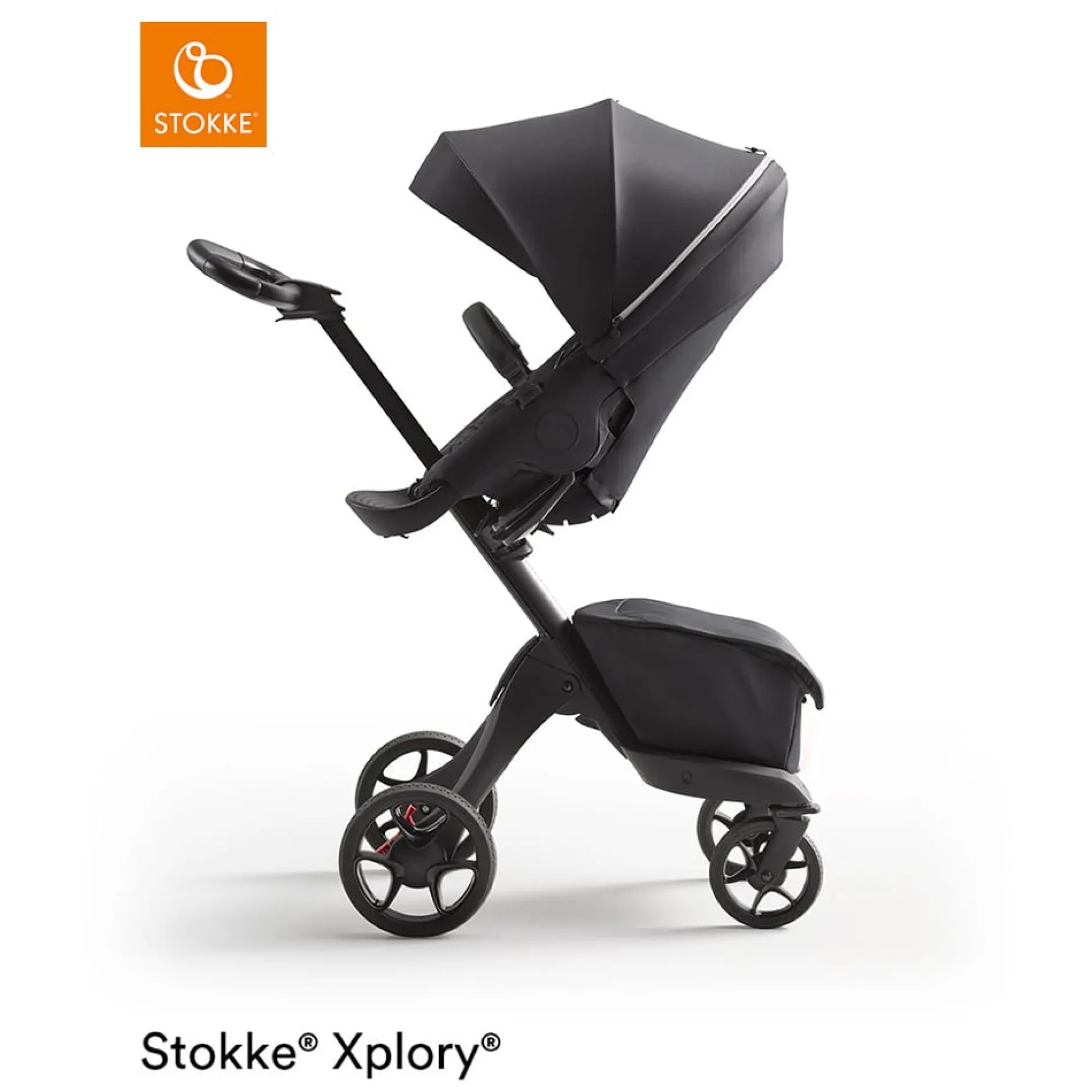 - Châssis Stokke® Xplory® noir avec poignée en similicuir
