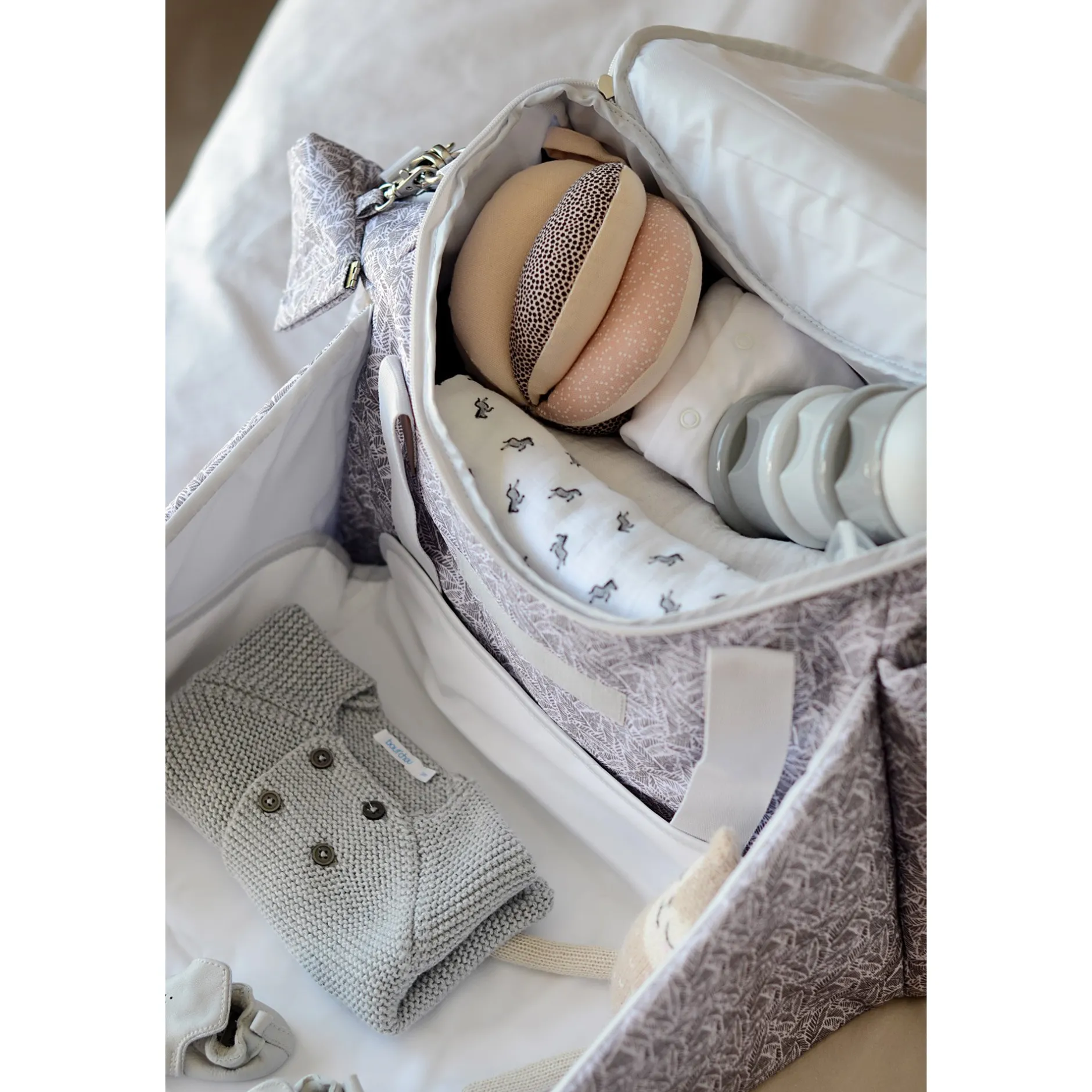 - Multiples rangements (espace soin, repas et parents dédiés) : un sac pour transporter aussi bien les affaires des parents (téléphone, clefs, porte-monnaie… ) que celles de l’enfant (vêtements…).