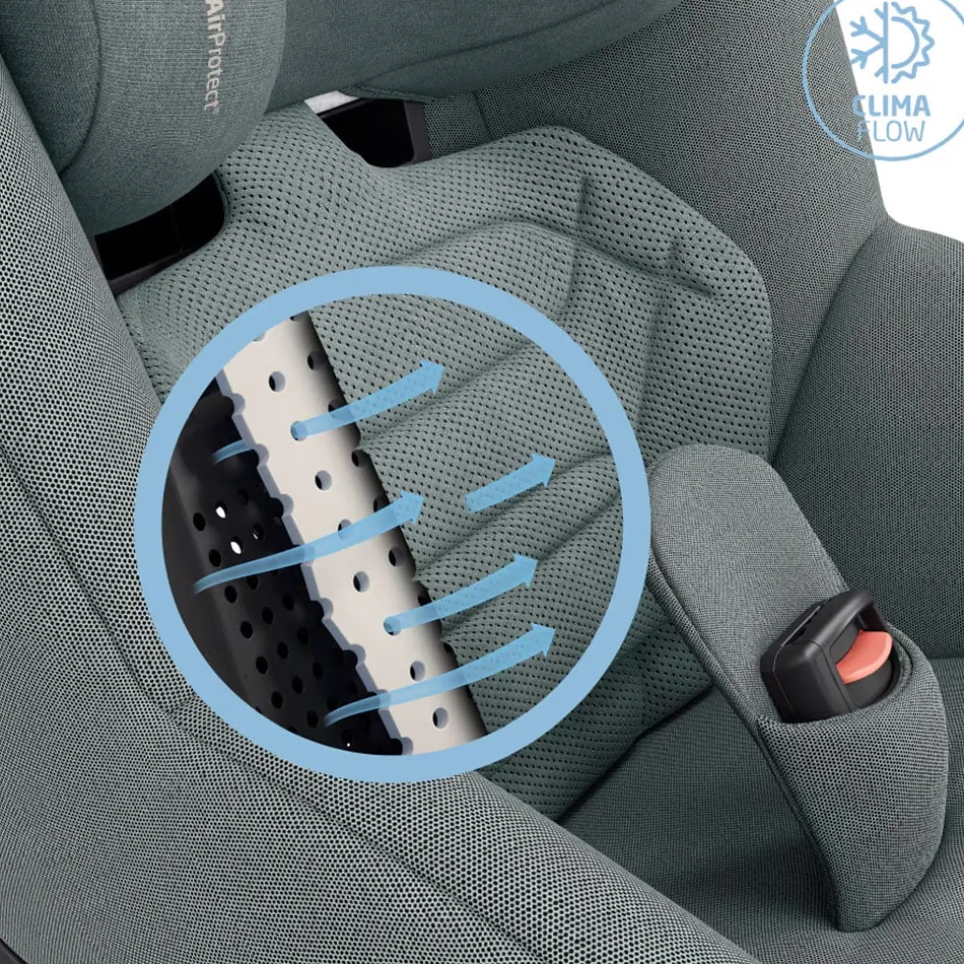 Un appui-tête réglable offre encore plus de confort, tandis que les panneaux ClimaFlow et les tissus respirants haute performance optimisent la circulation de l’air pour maintenir en permanence une température adaptée à votre enfant. Avec ses tissus doux et 100 % recyclés, Pearl 360 Pro offre un confort supérieur partout où vous allez. Et grâce à la technologie SlideTech™ dont est dotée la base FamilyFix 360 Pro (vendue séparément), soulever un tout-petit pour l’installer dans la voiture ou l’en sortir n’a jamais été aussi confortable pour les parents.