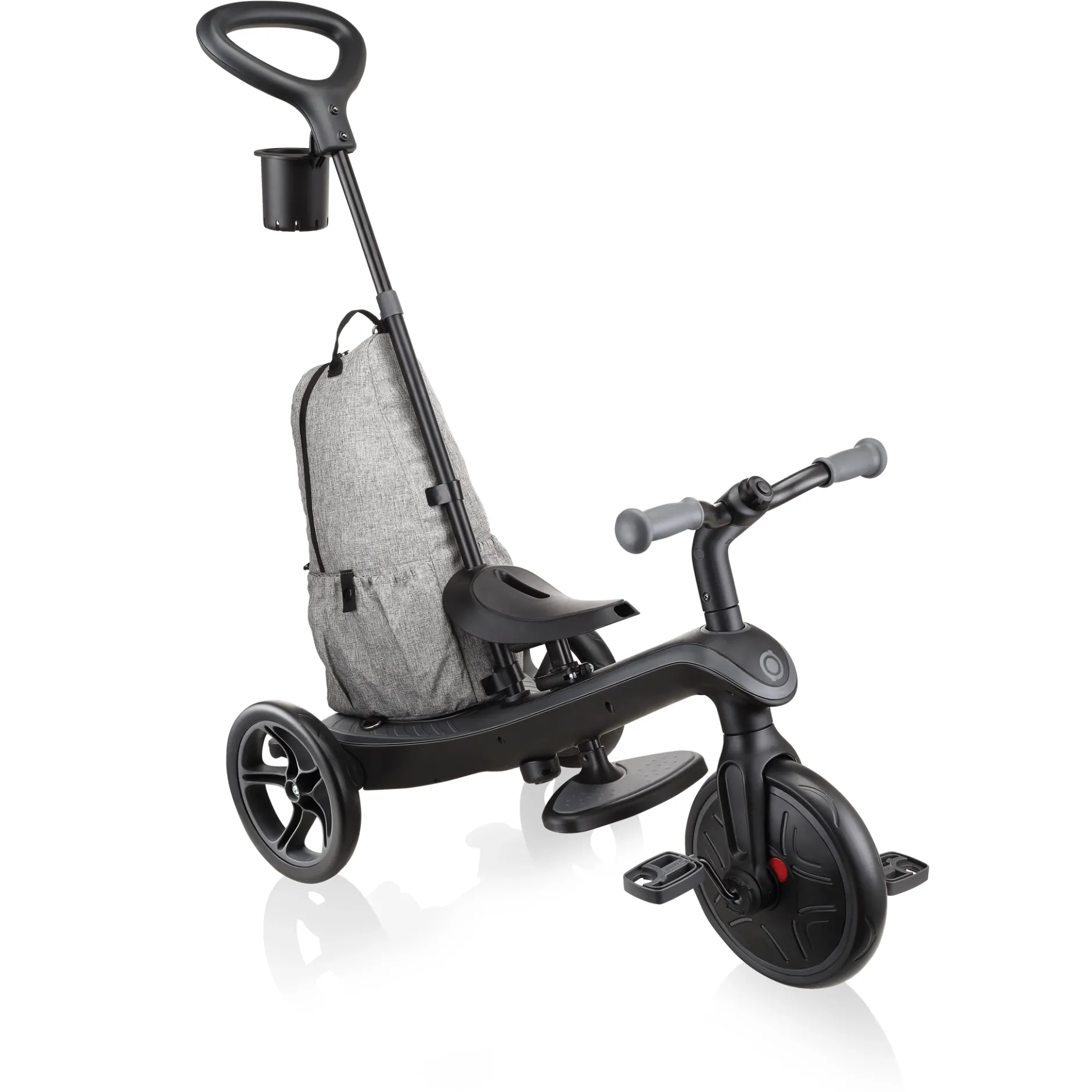 Le tricycle EXPLORER 4 en 1 se transforme de tricycle confort (à partir de 10 mois), en tricycle guidé (à partir de 18 mois), en tricycle autonome (à partir de 24 mois), et enfin, en draisienne de 2 à 5 ans. Ce tricycle évolutif s’adapte à votre enfant au fur et à mesure de sa croissance.