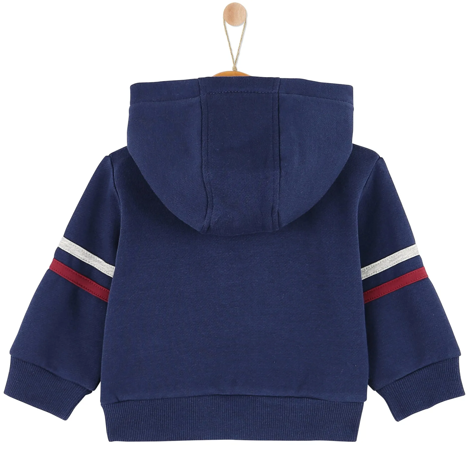 Bandes de jersey appliquées gris chiné et bleu marine façon galon apportent la touche mode.
