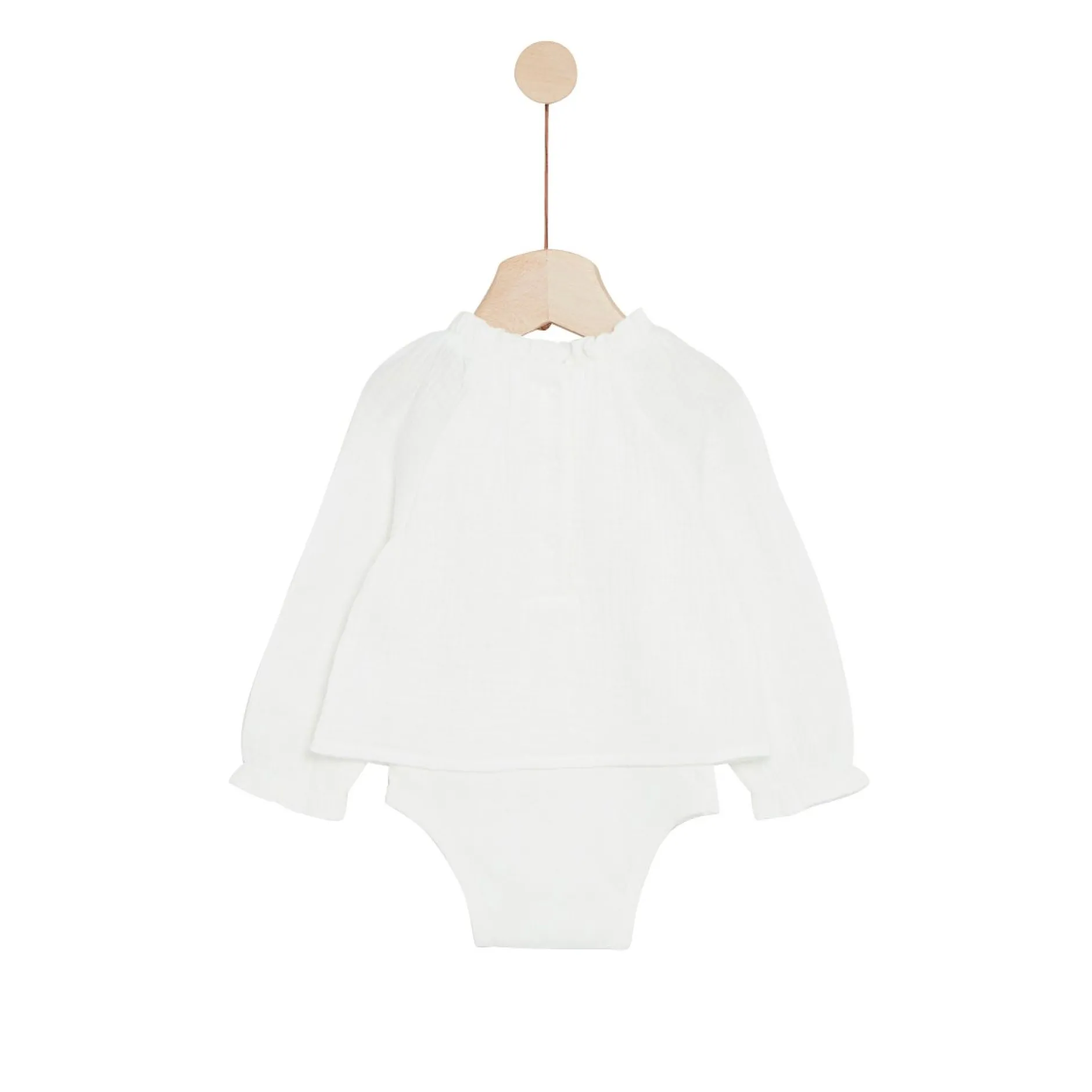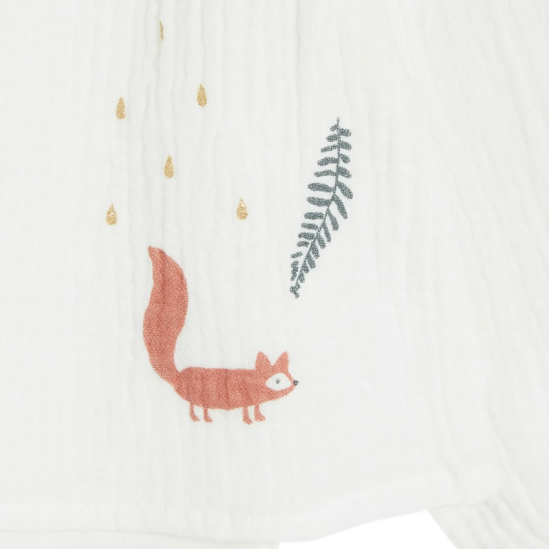 Petit body tunique Marèse en coton bio composé d’une tunique attenante en mousseline de gaze écrue et le body est en côte écru . Adorable avec son look rétro avec ses détails raffinés comme le bas de manches et l’encolure froncés par un petit élastique ! Cette pièce se portera seule ou sur un legging. Très ludique avec son animation devant représentant nos mascottes du thème : petit ours et petit écureuil s’amusant dans une forêt !