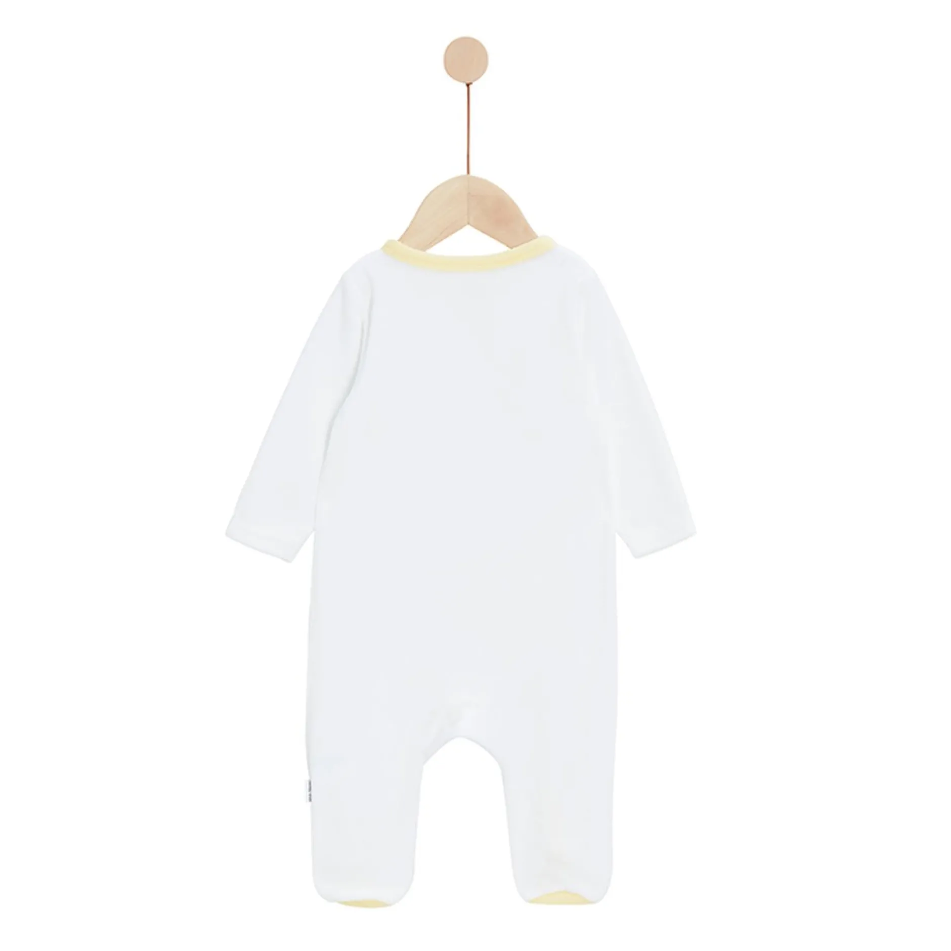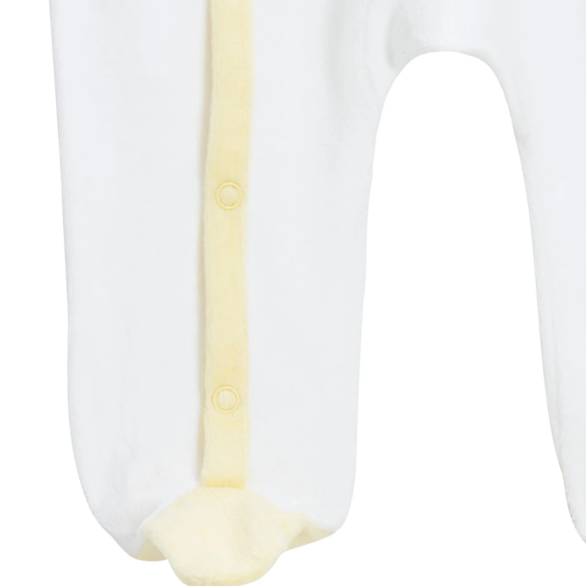 Lot de pyjamas P’tit Bisou, mixte, en velours tout doux : 1 jaune et 1 blanc. Tous deux sont ouverts devant par des pressions pour la plus grande fonctionnalité et évite ainsi de trop manipuler bébé.
