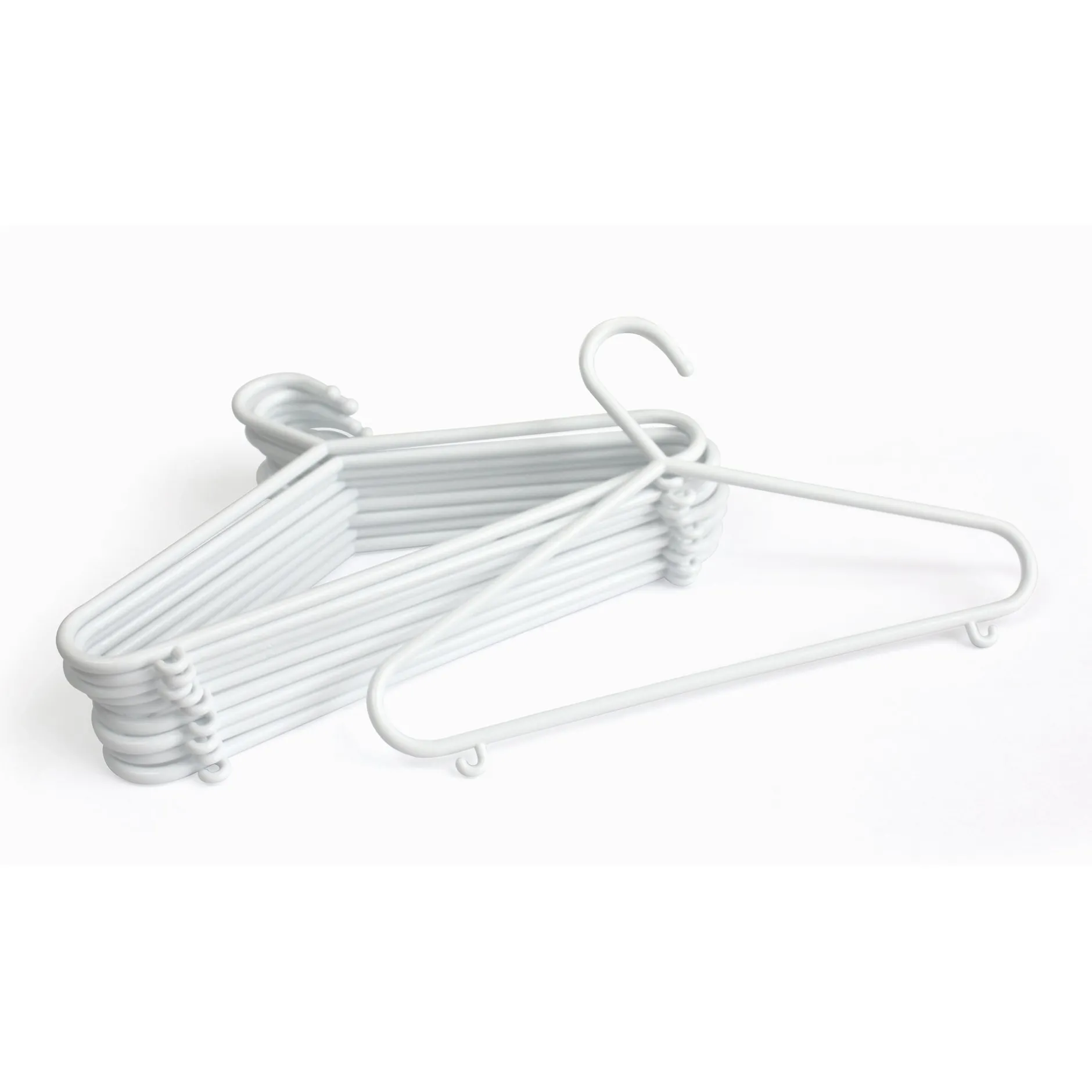 Ce lot de 10 cintres blanc Maïka est idéal pour ranger les vêtements d’enfant et de Bébé. Spécialement adaptés à la taille des vêtements des plus petits. Au design simple et au coloris blanc mixte. Ils s’accorderont parfaitement à tous les styles de chambre, que ce soit pour un petit garçon ou une petite fille.