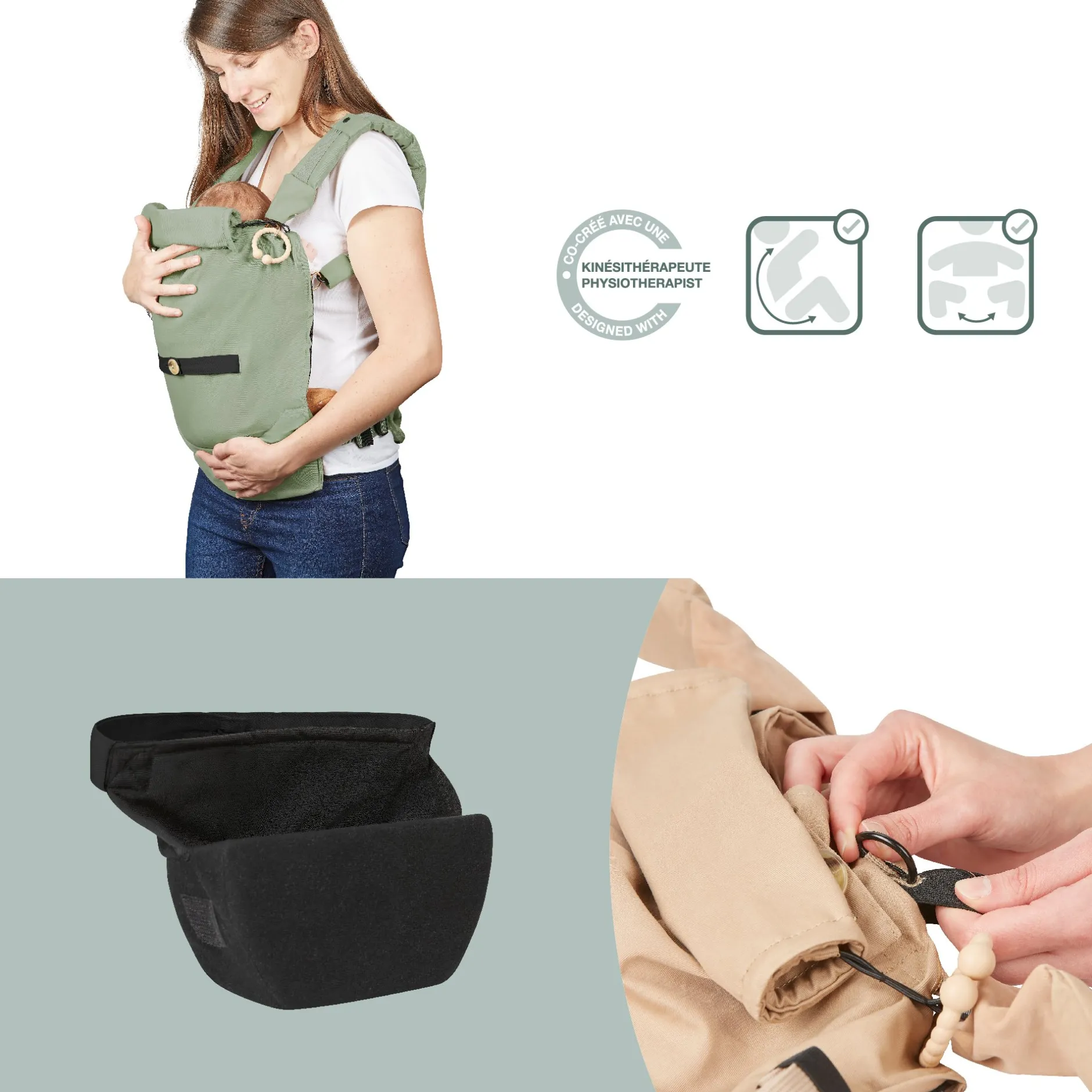 - Facile d’installation, il se fixe directement sur le porte-bébé grâce à son système d’attache.