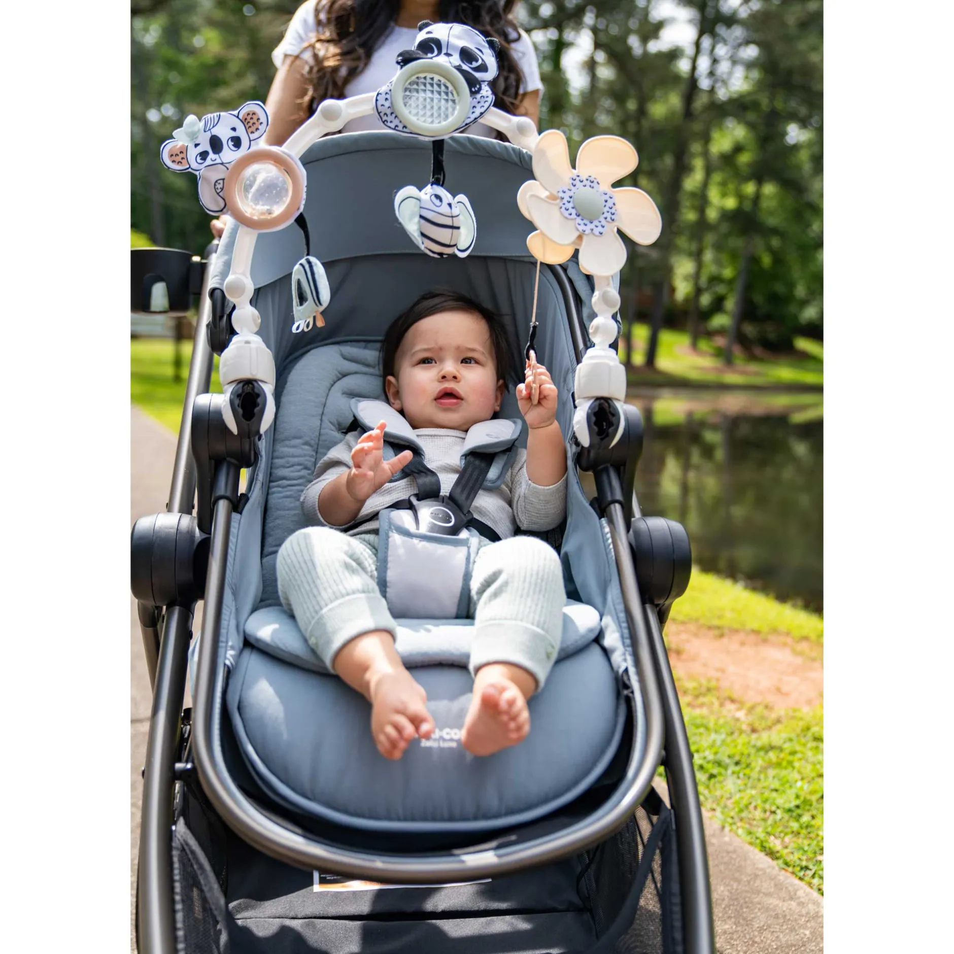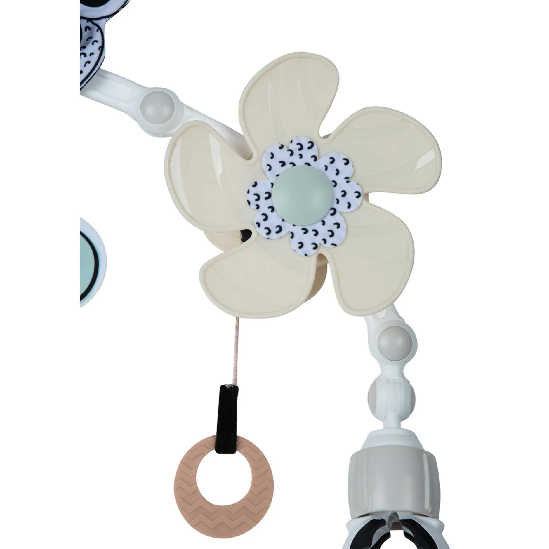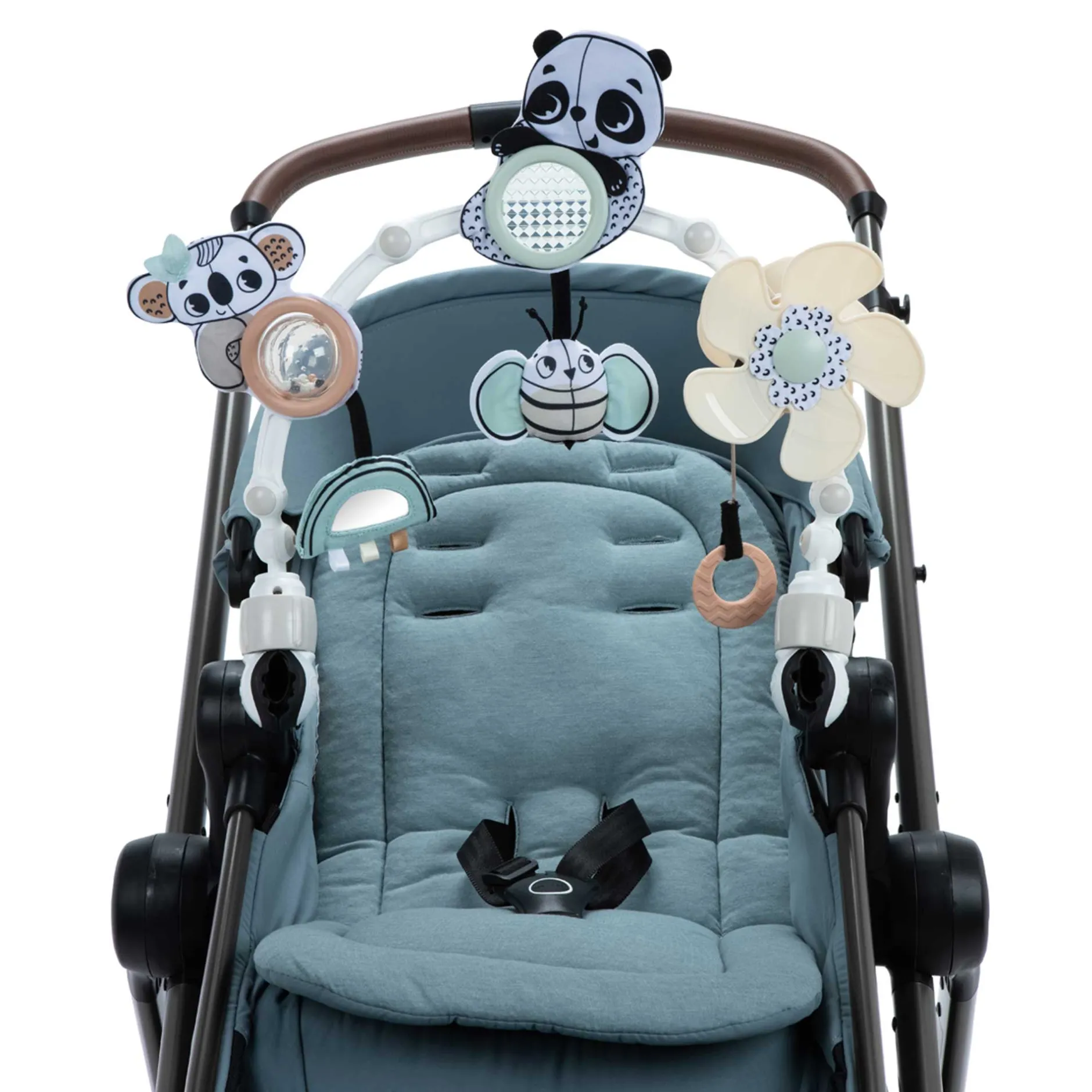 Magnifique arche Sunny Stroll Black & White avec 6 activités d’éveil attrayantes et un réglage de l’angle, pour l’amusement et le divertissement où que vous alliez ! L’arche flexible s’adapte pour être compatible avec l’âge de bébé et ses préférences de jeu.