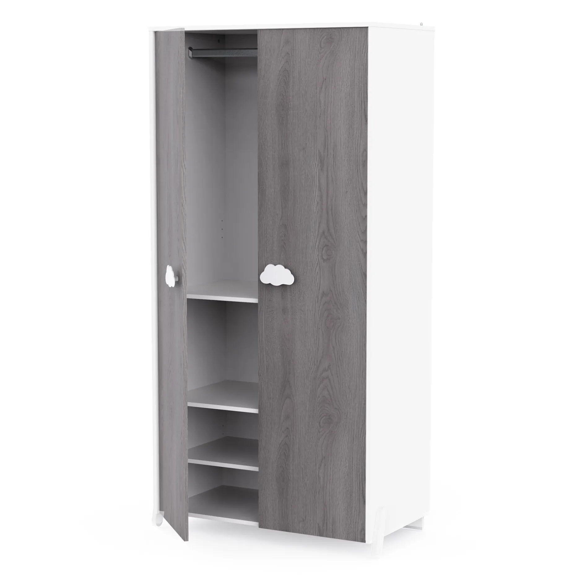 Afin de ranger les vétements de votre Bébé. Découvrez l’armoire 2 portes ALDINA avec 1 penderie et 3 rayons.