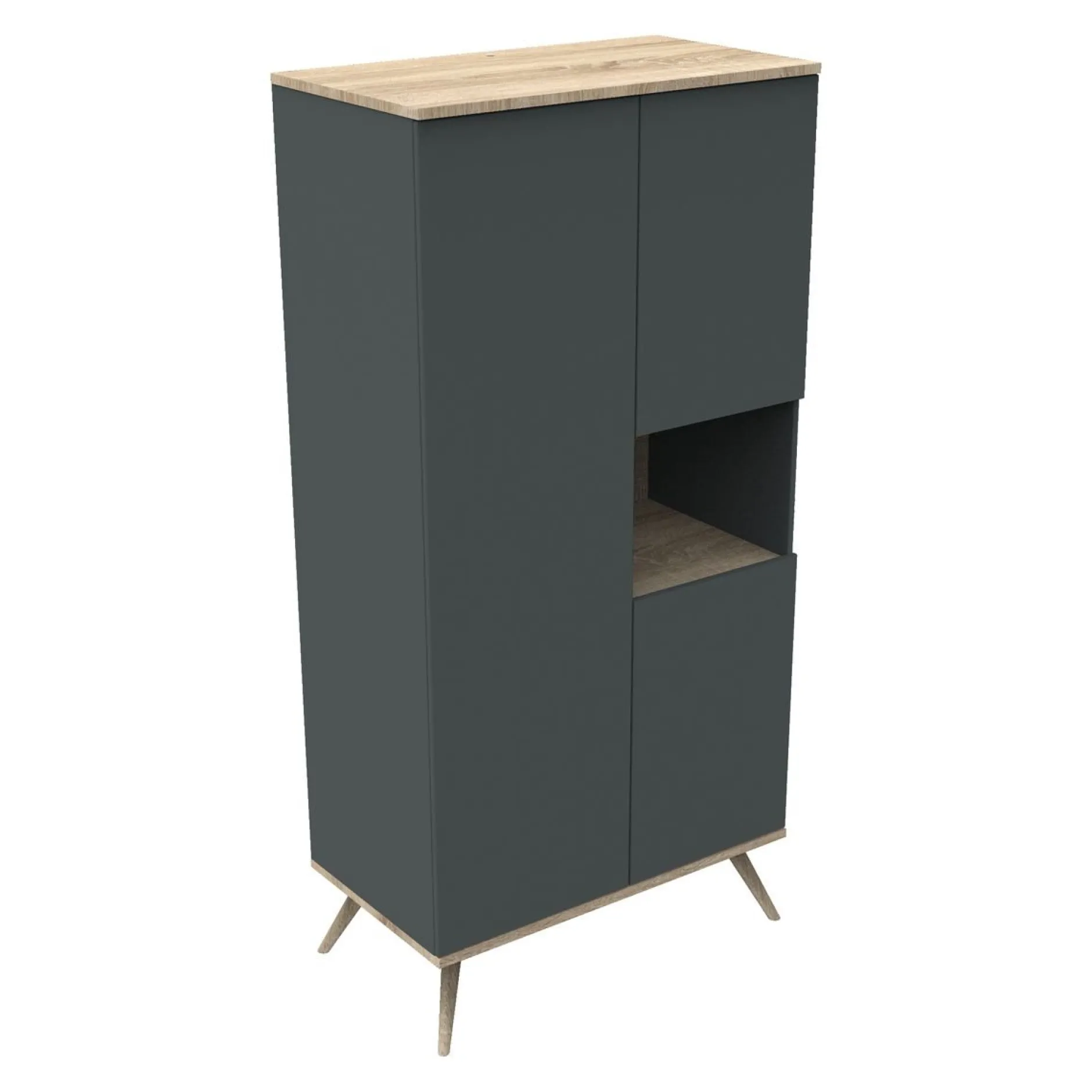 Clin d’oeil aux meubles rétro, elle associe une couleur intemporelle avec du bois et des pieds coniques inclinés pour parfaire son style vintage.