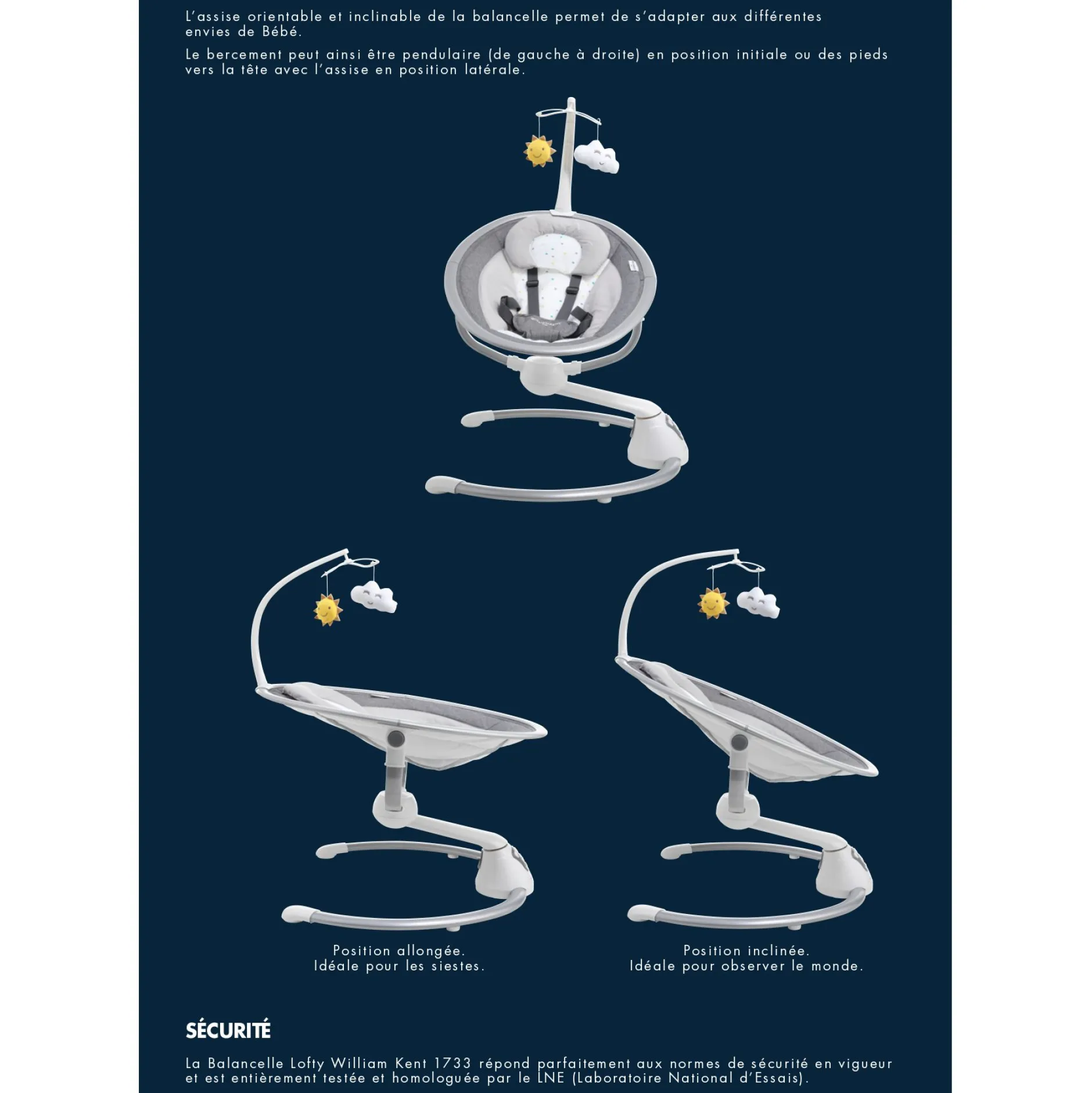 La balancelle Lofty accompagne bébé dans ses premiers moments d’éveil : confortablement installé il pourra observer le monde qui l’entour et avoir de longues conversations avec les personnages (amovibles) de l’arche d’éveil.
