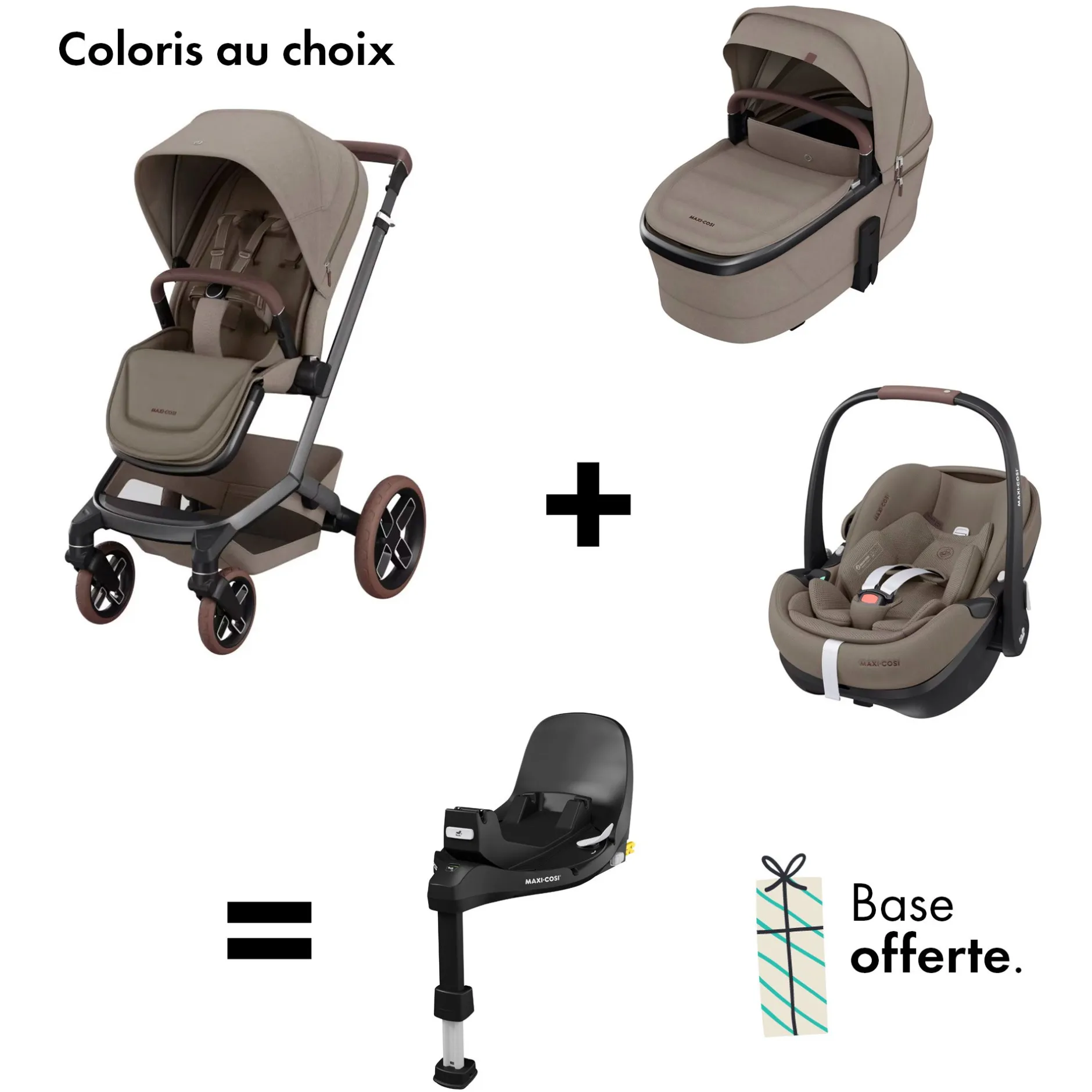 Ce bundle contient une poussette Fame (coloris au choix), une nacelle Fame (coloris au choix), un siège auto Pebble 360 Pro² (coloris au choix) et une base FamilyFix 360 Pro de la marque Maxi-Cosi.