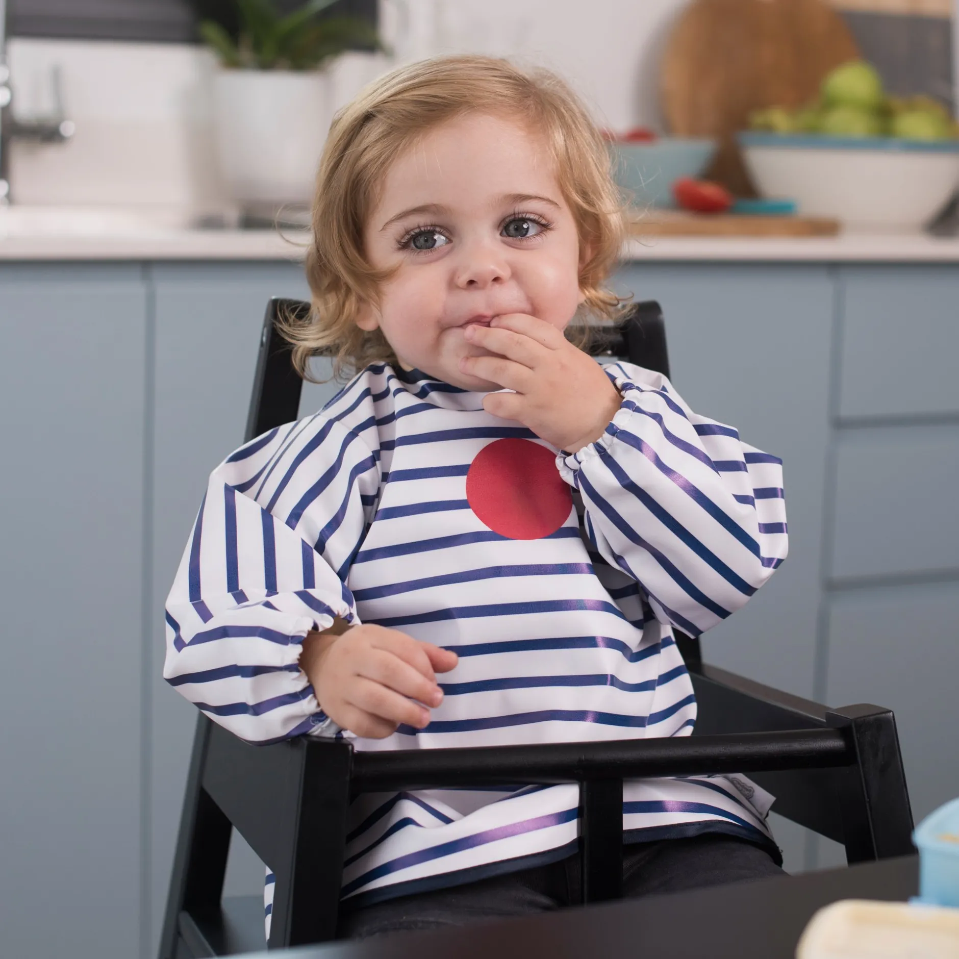 Conçue en tissu innovant (plastifié et imperméable), le bavoir blouse se nettoie facilement avec une lingette ou en machine.