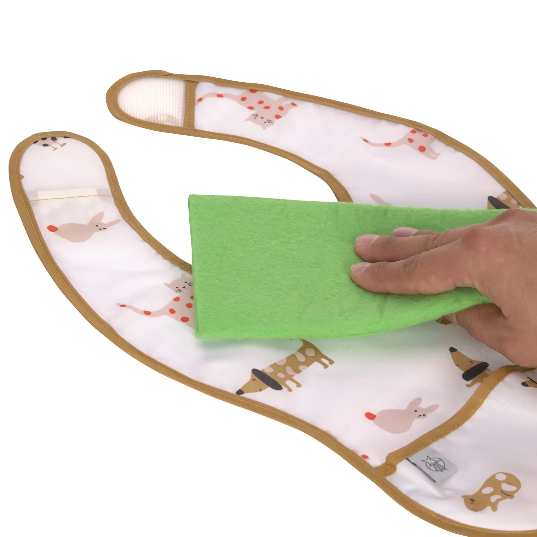 Les petits gourmands de 6 à 24 mois se sentiront à l’aise avec les bavoirs de la collection Little Mateys de LÄSSIG. De taille moyenne, avec poche ramasse miettes, et sa matière imperméable, les vêtements sont bien protégés. Grâce à la fermeture Velcro pratique au dos, le bavoir se fixe et s’enlève en toute simplicité. Le pack de deux bavoirs légers et compacts se décline en deux modèles différents et se glisse dans tous les sacs, idéal pour les repas lors des sorties. Lavables à 40°C.