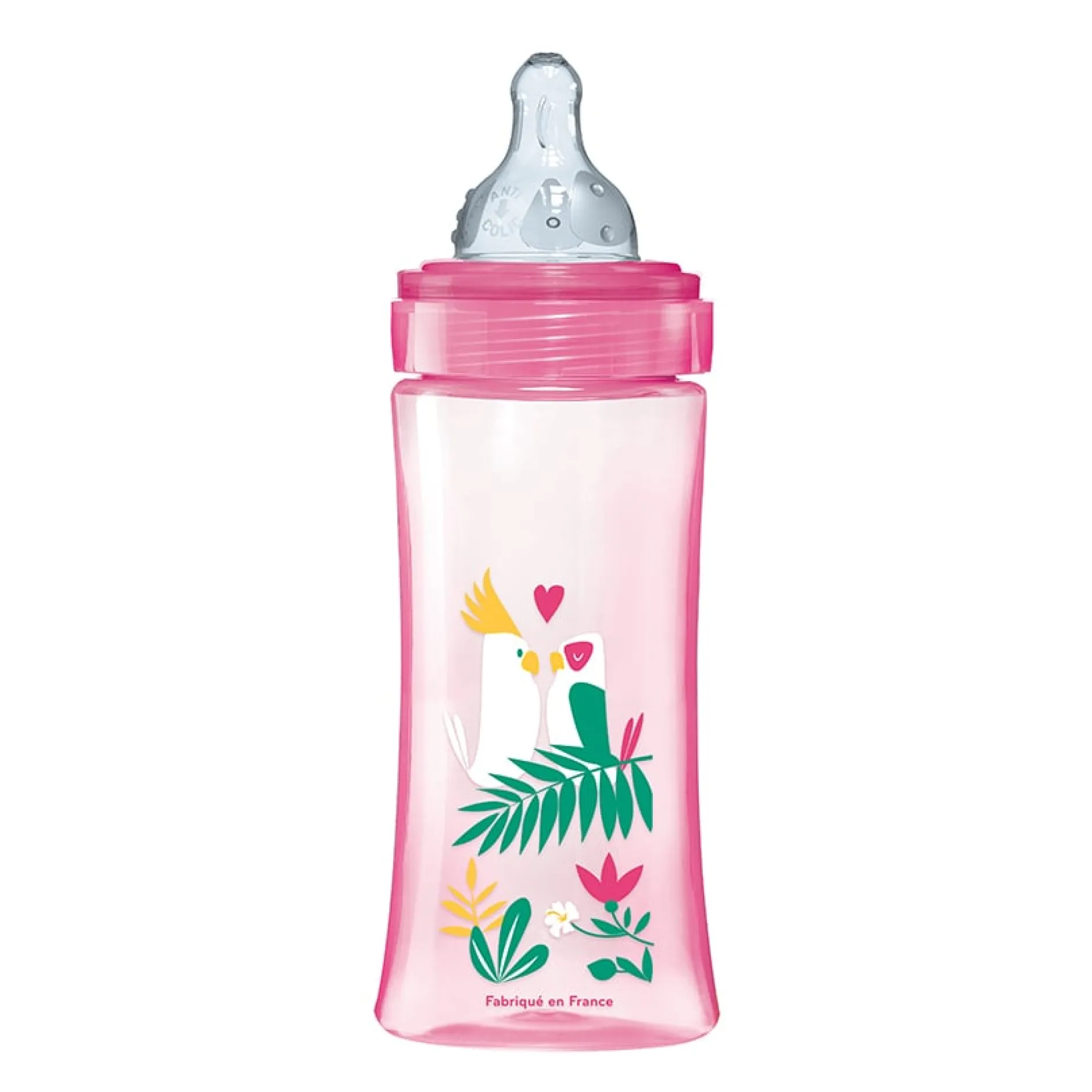 Biberon fabriqué en France et garanti sans bisphénol A* ni S (*conformément à la réglementation en vigueur).