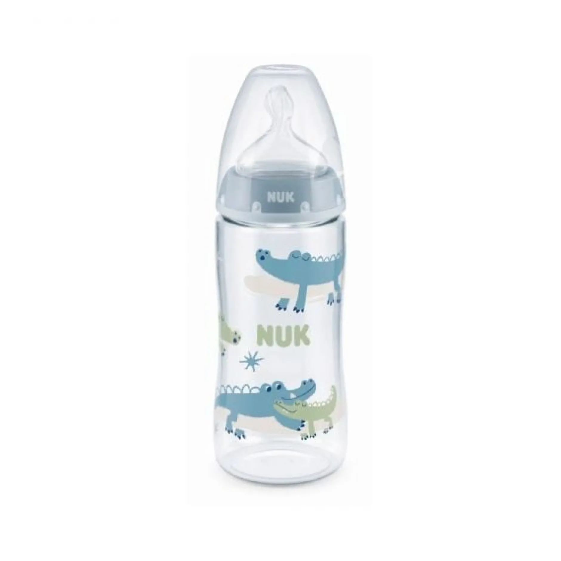 NUK First Choice + Biberon Temperature Control 360 ml 6-18 Mois est un biberon doté de l’indicateur « Temperature Control » qui permet de vérifier que le contenu du biberon n’est pas trop chaud. S’il est trop chaud, l’indicateur intégré à la graduation blanchit. La température optimale d’un biberon est celle de la température corporelle (37°C = indicateur de couleur bleue).