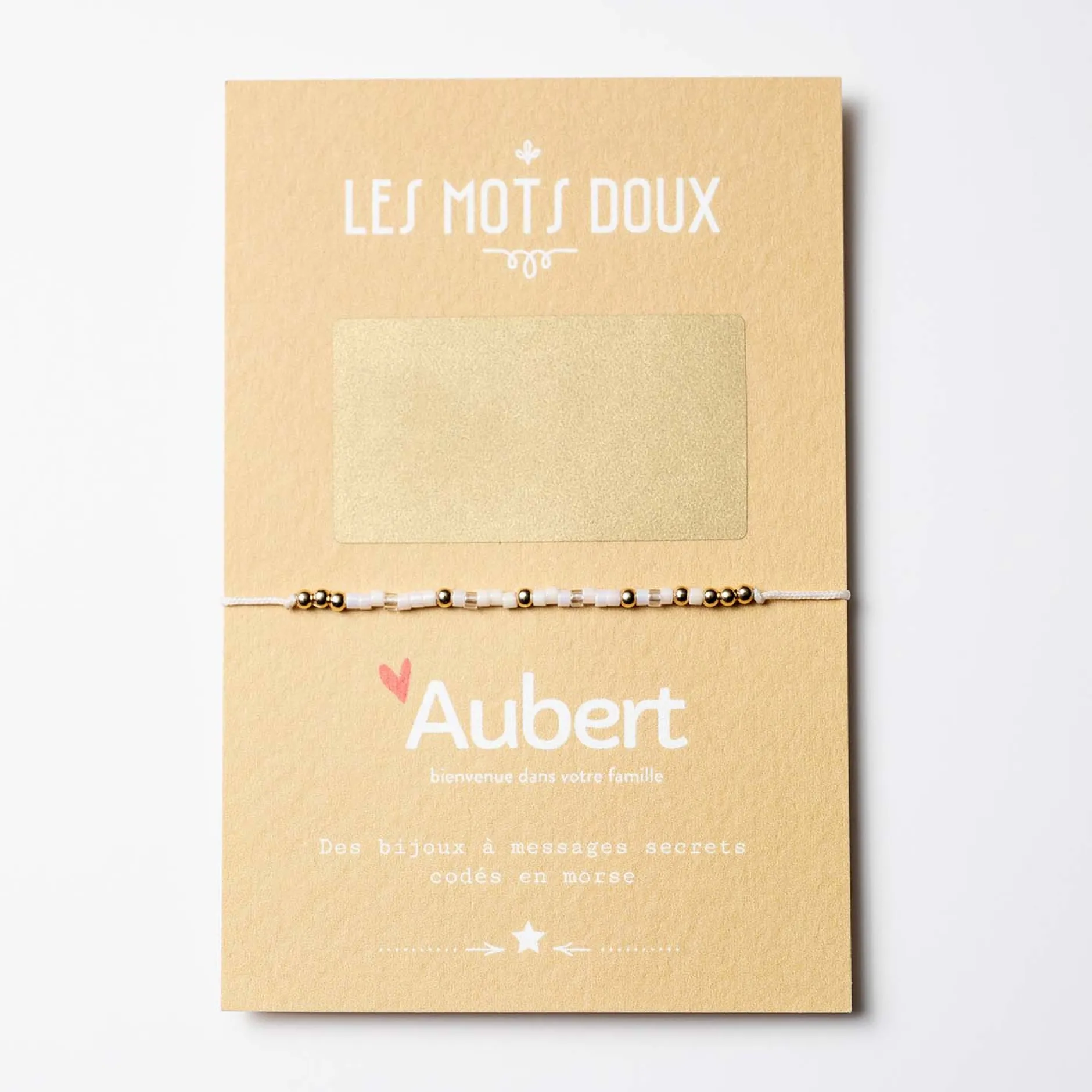 Les perles reprennent le code de l’alphabet morse pour traduire un message secret. Ici : Mamie. Demandez à la future mamie de gratter l’étiquette sur la carte pour découvrir votre merveilleuse nouvelle !