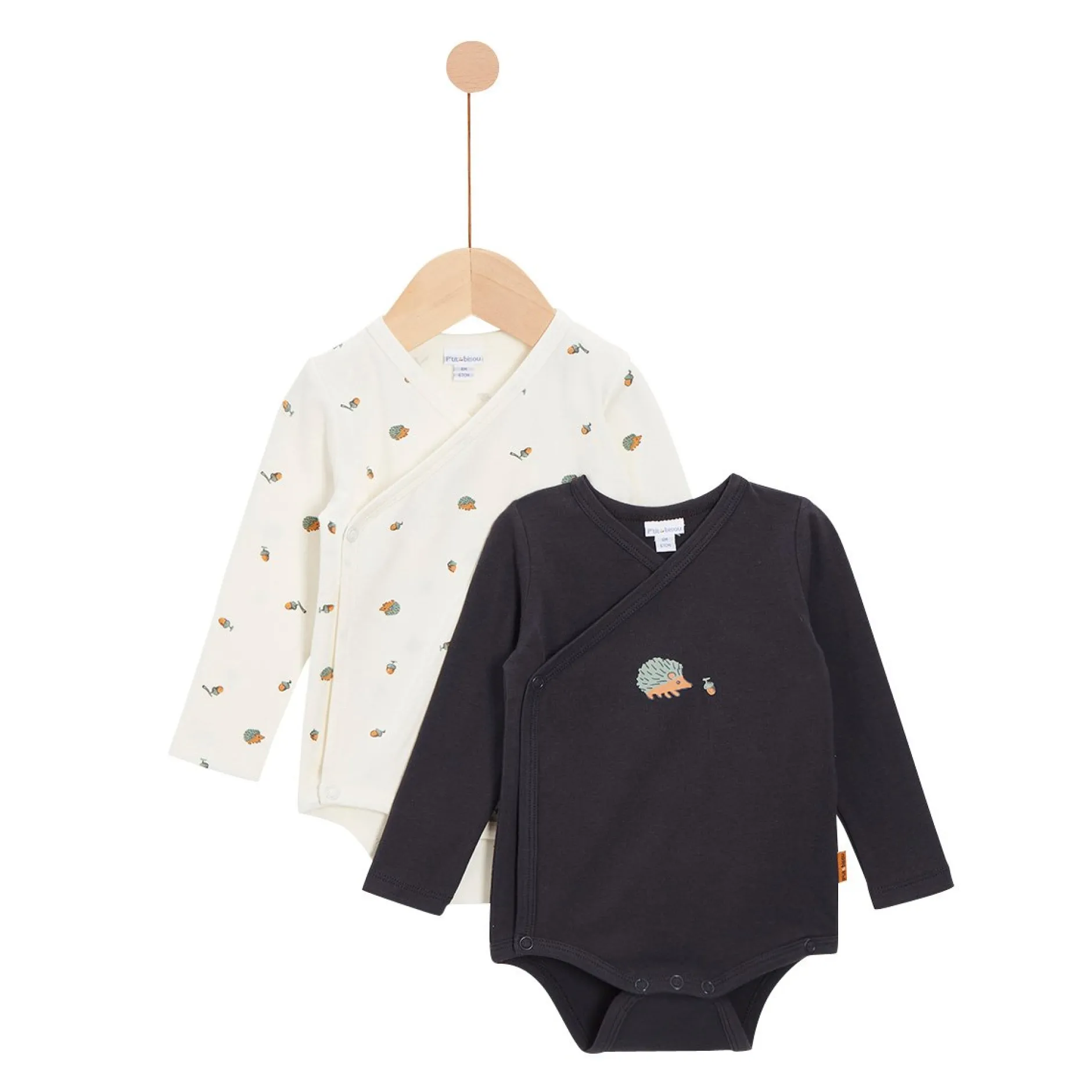 Lot de 2 Bodies manches longues P’tit Bisou : 1 en jersey sur fond de l’imprimé minimaliste « feuillage automnal » sur fond écru et un autre gris anthracite. Absolument fonctionnels avec leurs ouvertures devant et entrejambes par pressions pour plus de fonctionnalité. Très belle animation sur le devant du gris qui représente un petit hérisson en ballade dans la forêt. Ce lot très craquant et pratique peut se porter aussi bien en pièce de dessous que dessus ! Il peut se porter de jour comme de nuit ! La pièce parfaite à avoir dans son armoire ! Lavage conseillé à 30°c.