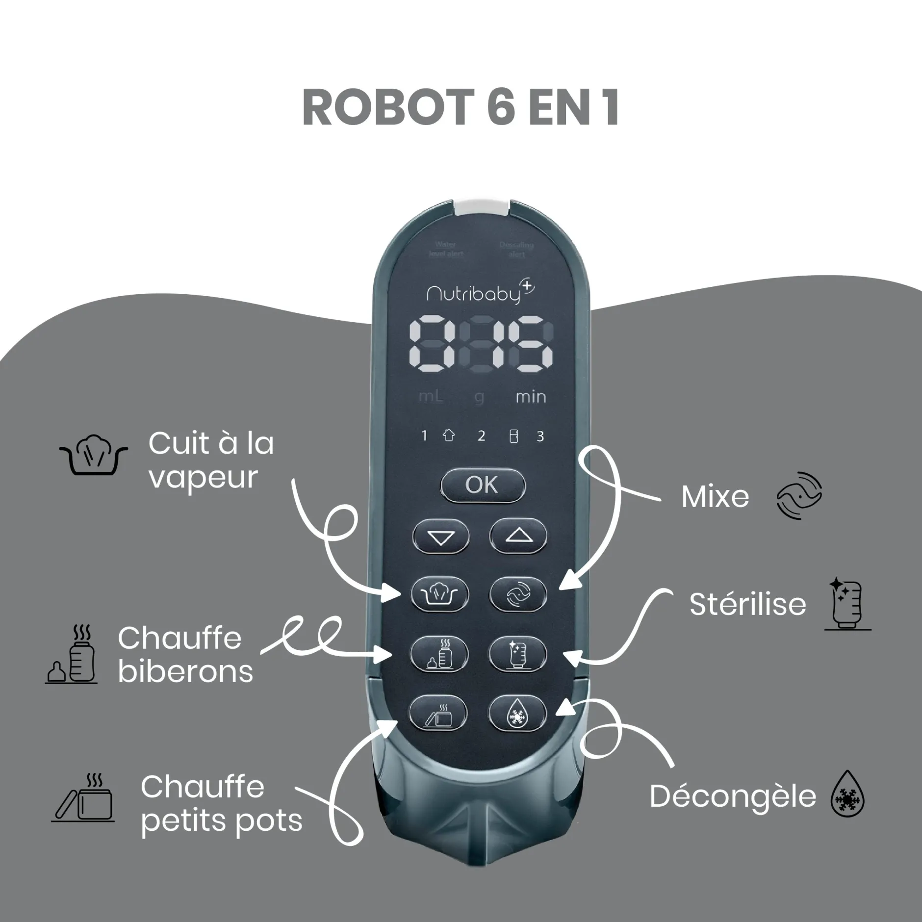 - Robot multifonctions bébé 6 en 1 (fonctions pré-programmées) : cuisson à la vapeur, mixage, décongèlation, stérilisation et chauffe-biberons et chauffe petits pots
