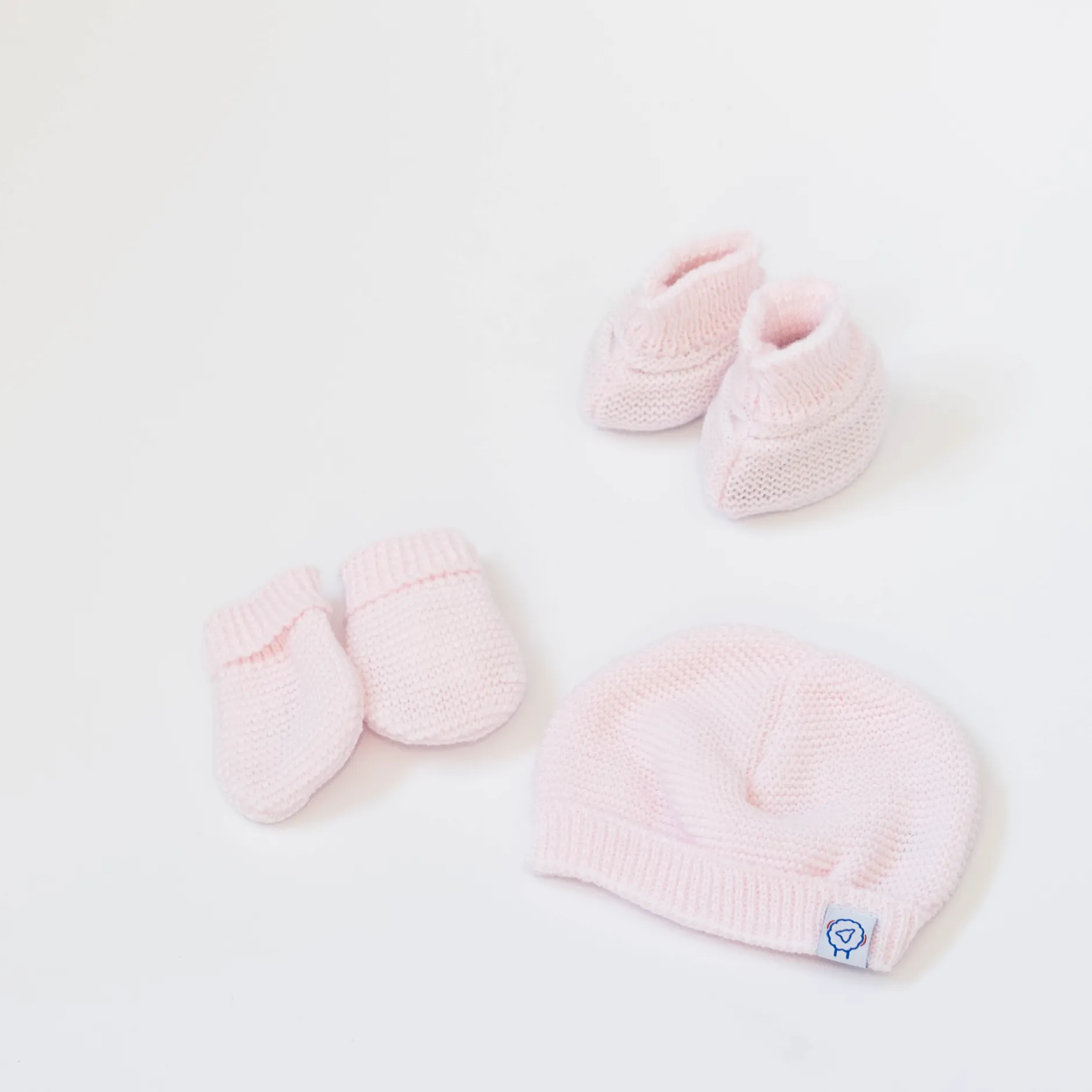 Vous cherchez les premiers accessoires indispensables pour votre bout de chou ? Découvrez le trousseau naissance de P’tit bisou, composé de moufles, d’un bonnet et de chaussons. Idéal pour la naissance !
