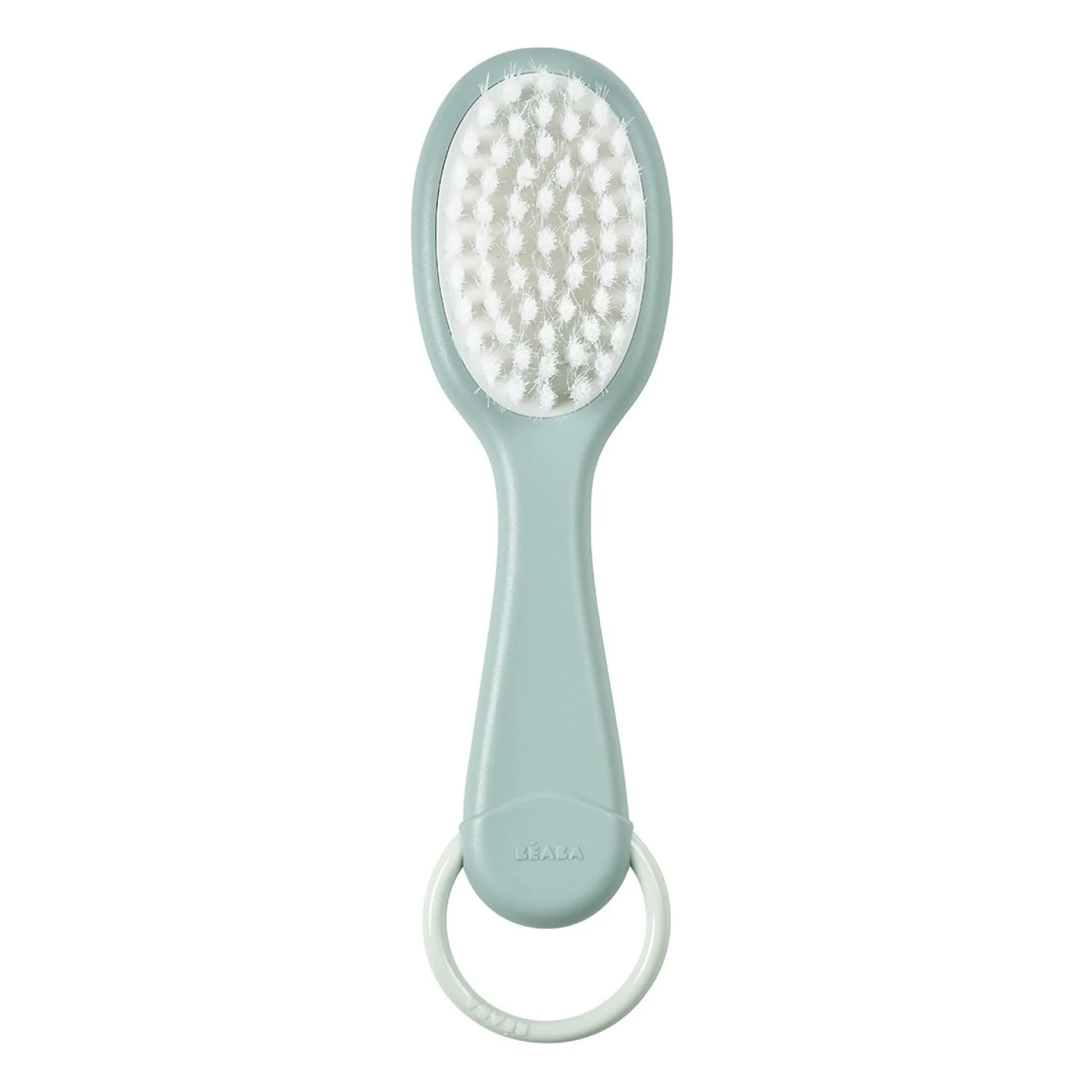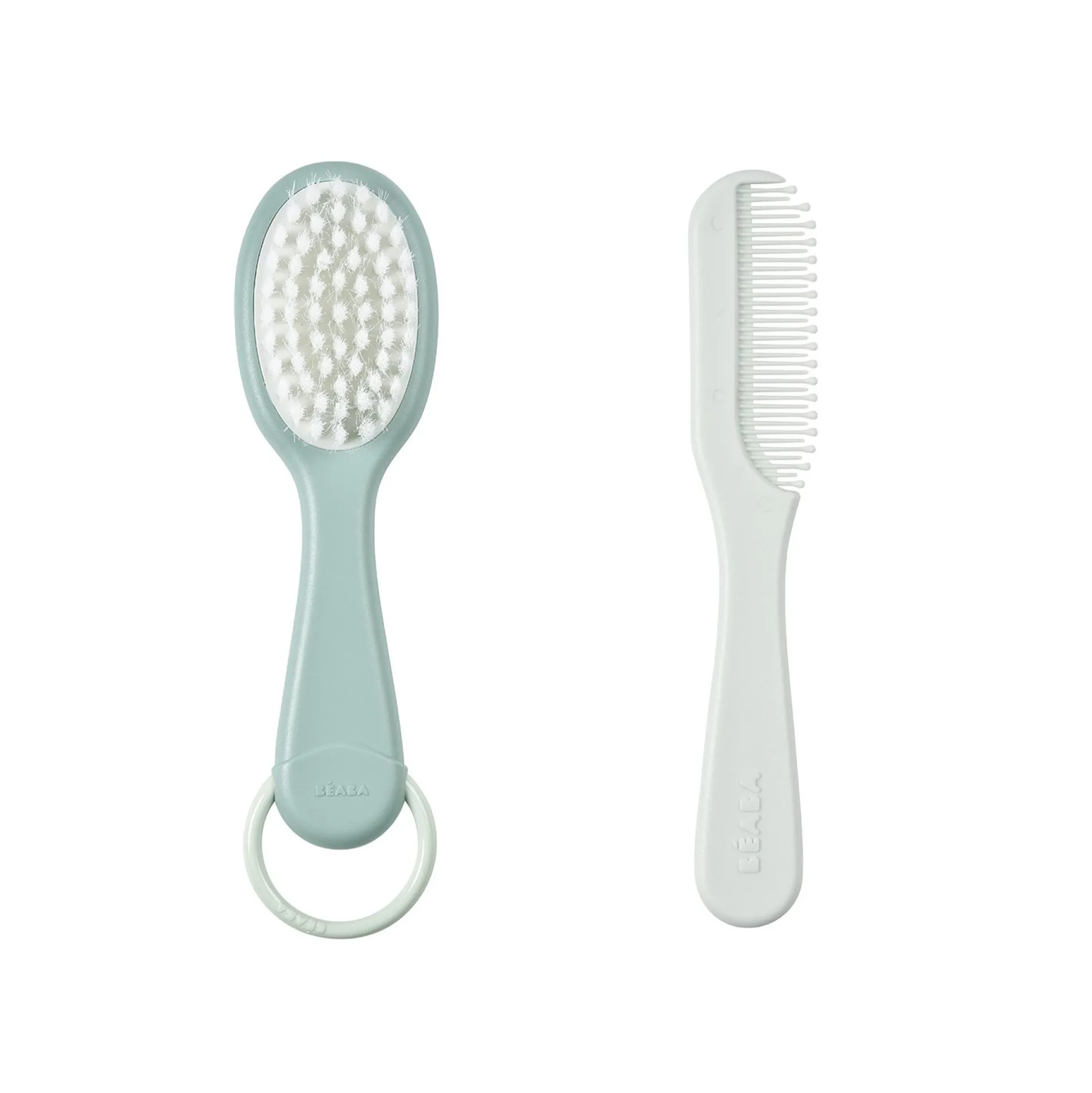 Produit 2ème âge : poils de la brosse en nylon pour plus de douceur et peigne avec dents arrondies pour ne pas blesser le cuir chevelu de bébé.