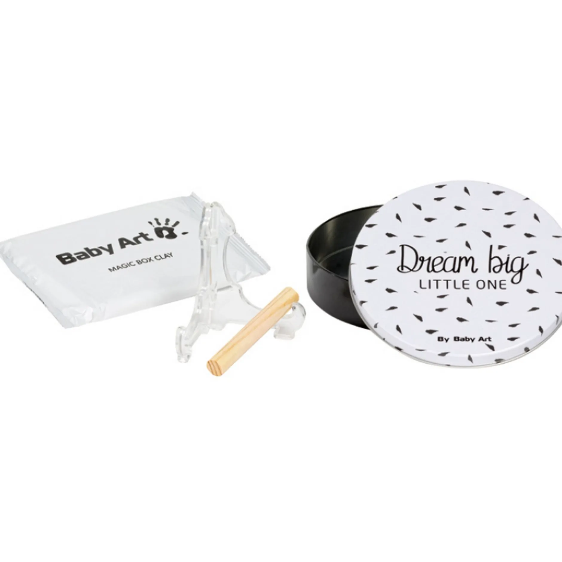 Le Concept Baby Art se compose de paquets de bricolage. Chaque fier parent peut réaliser d’une façon très simple et rapide une empreinte exacte et extrêmement détaillée de la main ou du pied de son bébé. Les modes d’emploi sont composés d’une telle façon que même la personne la plus maladroite peut créer un magnifique chef d’œuvre sans aucun problème et sans barbouiller.
