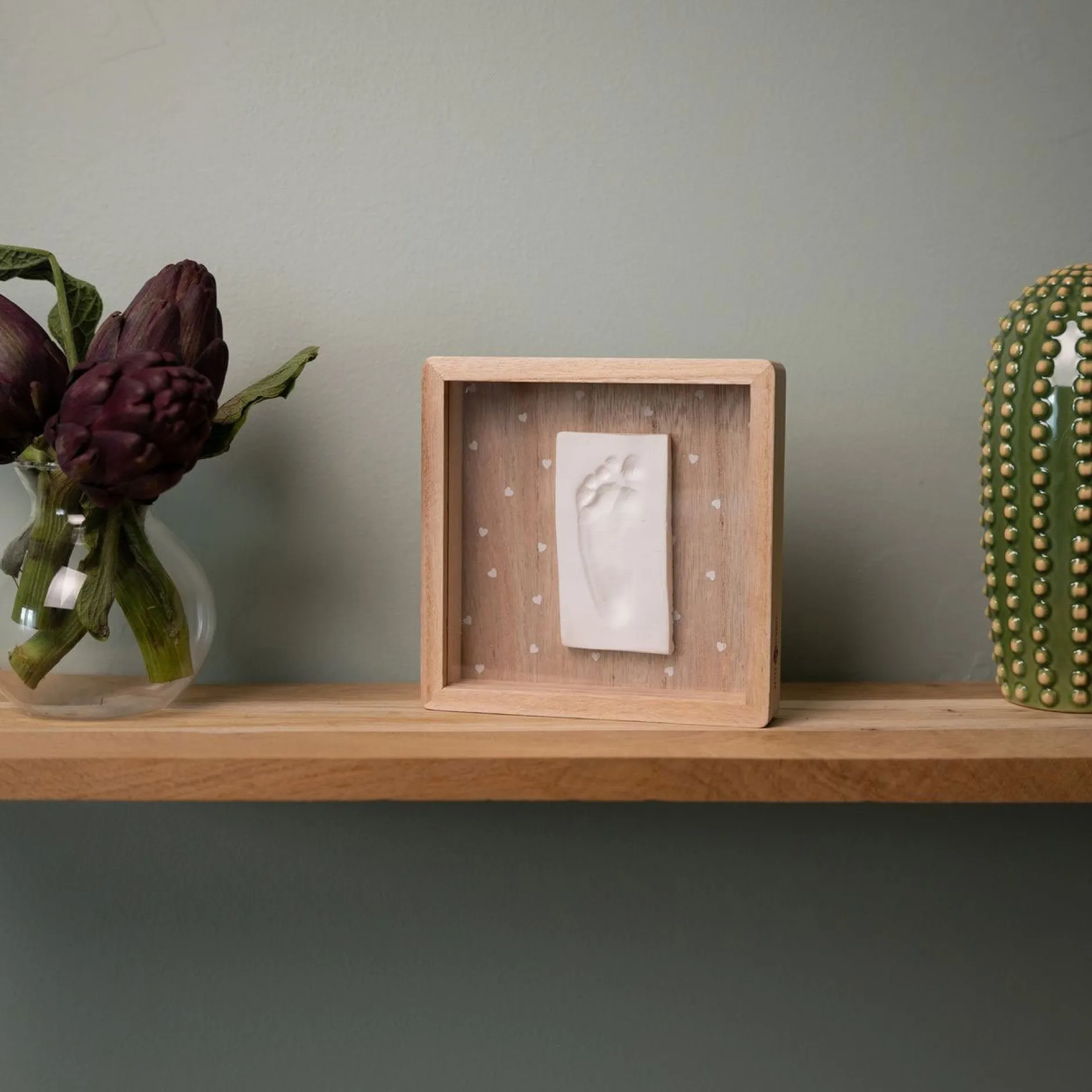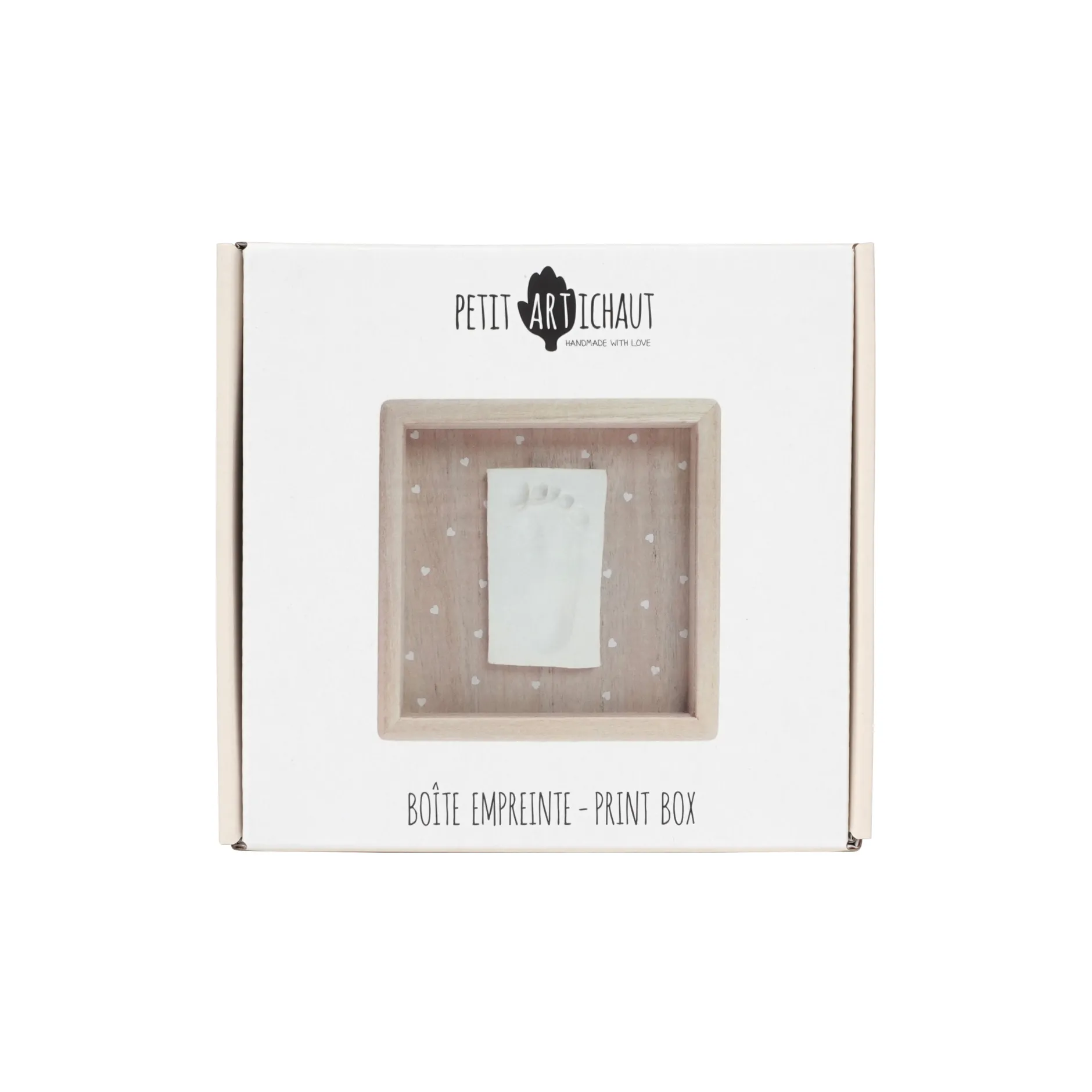 La Boîte Empreinte – Jolis Coeurs permet de créer un souvenir des petites mains ou des petits pieds de bébé. Cet élégant cadre carré aux motifs de petits coeurs peut être posé sur un meuble ou fixé au mur pour décorer n’importe quel espace de la maison. Il comprend un cadre en bois avec couvercle de protection, un sachet de pâte hypoallergénique, un rouleau et un descriptif pour créer facilement l’empreinte.