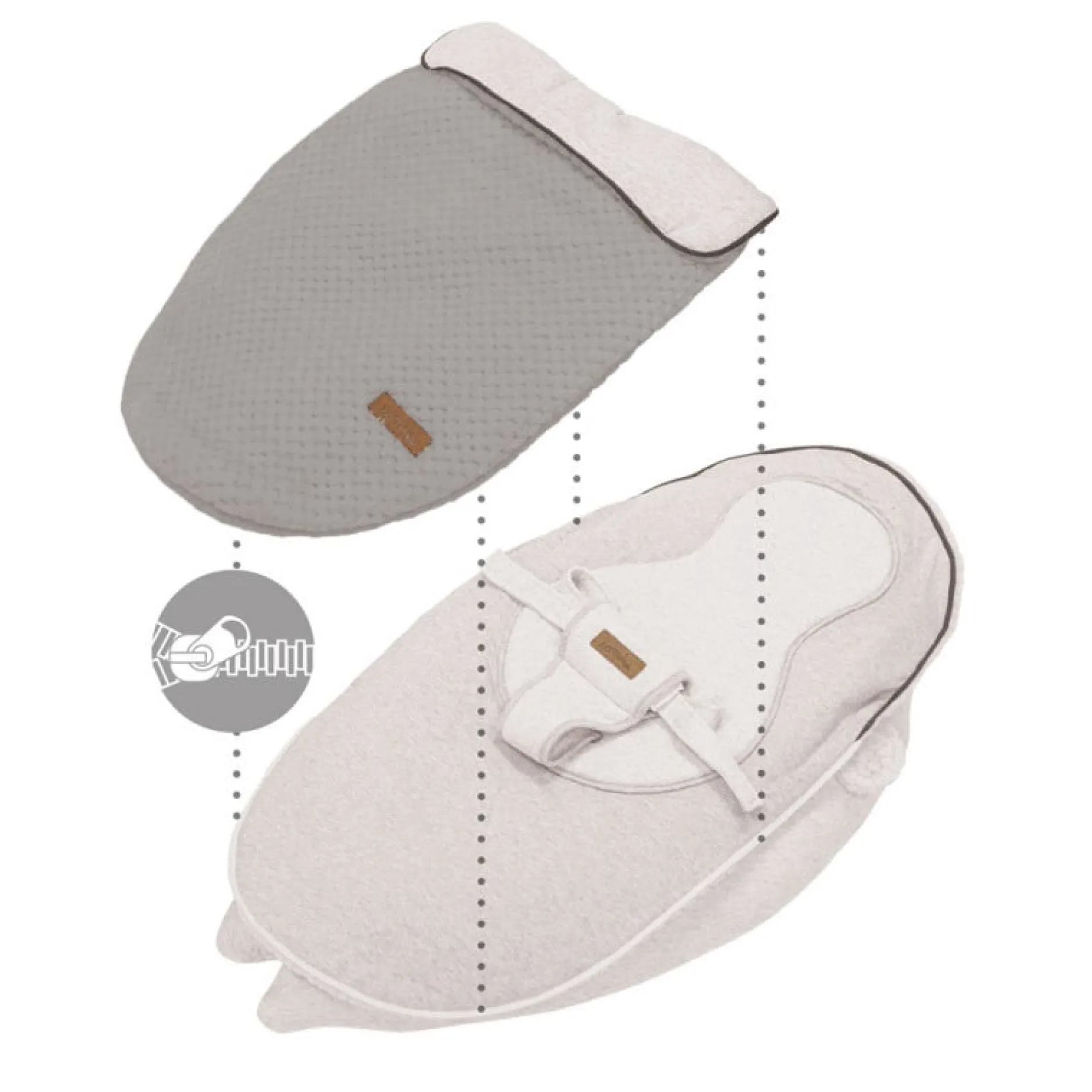 Malin le coussin d’allaitement Soft Nova s’adapte aux saisons grâce à la partie couvrante du nid d’ange qui est amovible par zip et permet d’être retirer.