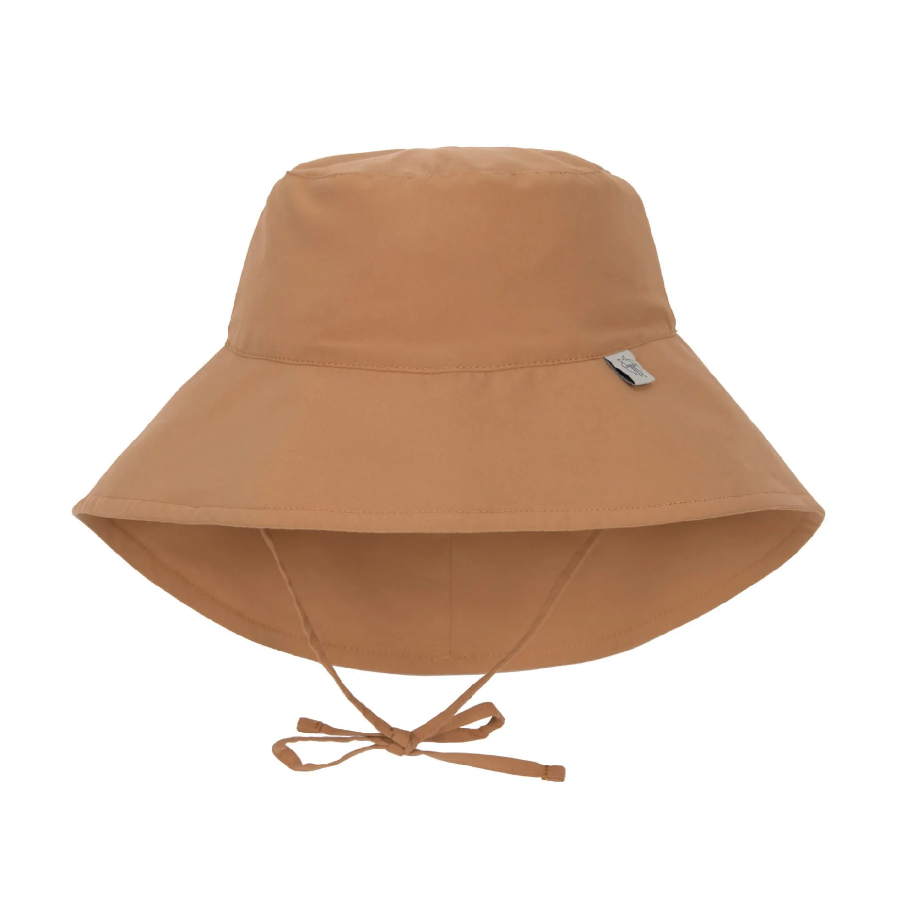 Pour ne pas perdre le chapeau à cause du vent, ou quand l’enfant joue, on peut le nouer sous le menton. Il est agréable à porter dans l’eau, ou en dehors, grâce à sa matière légère, respirante, et qui sèche facilement. De plus, la doublure régulatrice d’humidité évacue directement l’humidité vers l’extérieur. De retour à la maison, le chapeau peut être lavé à 30°C (programme linge délicat).