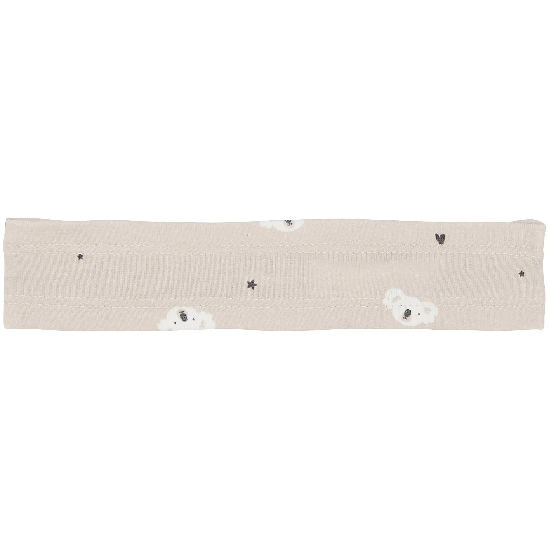 Bandeau Marèse en jersey côtelé de coton bio sur fond beige nougat en imprimé exclusif avec petites têtes de koala.